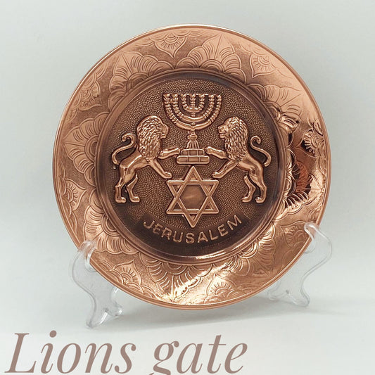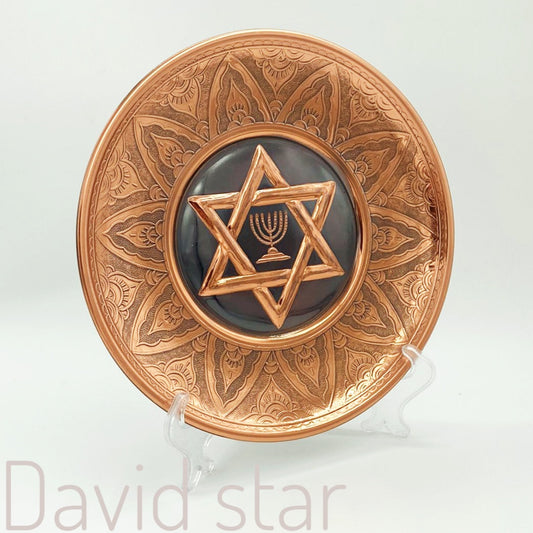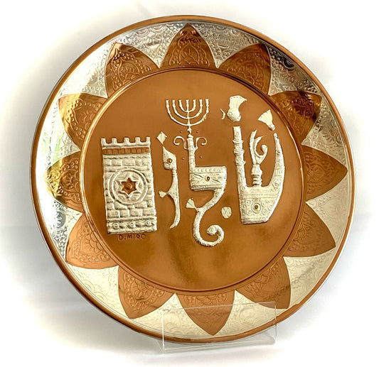 Copper plate - The Menorah. The symbol of the State of Israel is hand engraved on copper and silver by David Miro.
