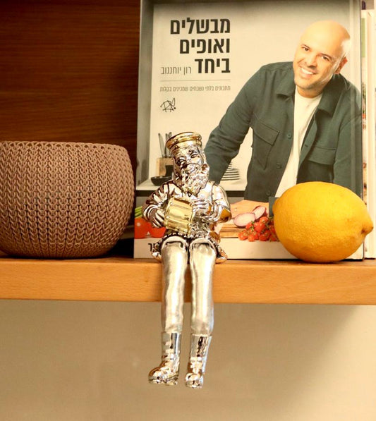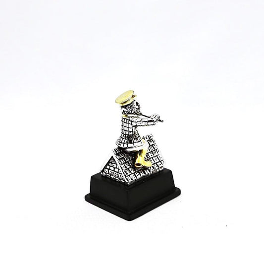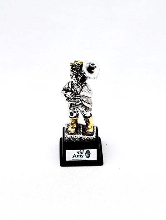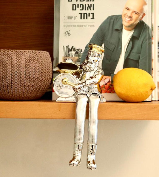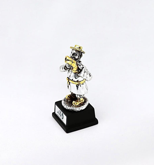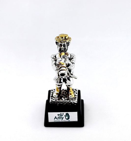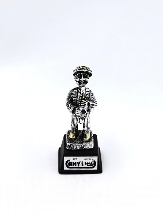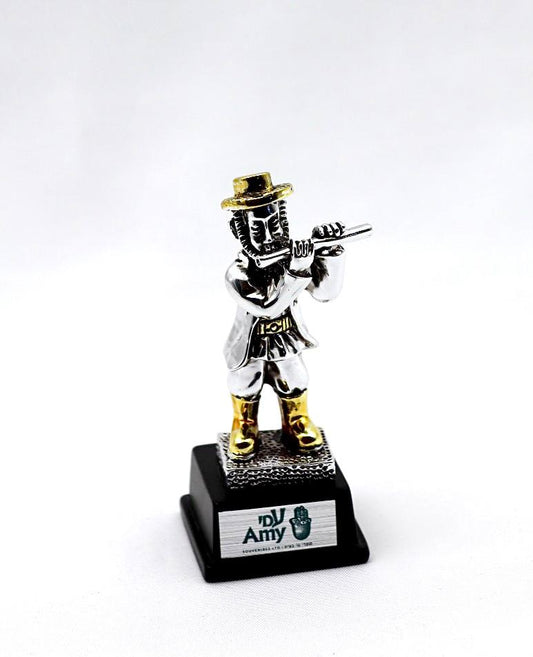 A seated Hasidic playing a violin, made of electroformed silver plating and gold plating.