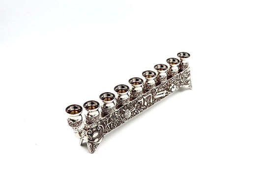 Luxurious gold and silver plated metal menorah decorated with a swirl
