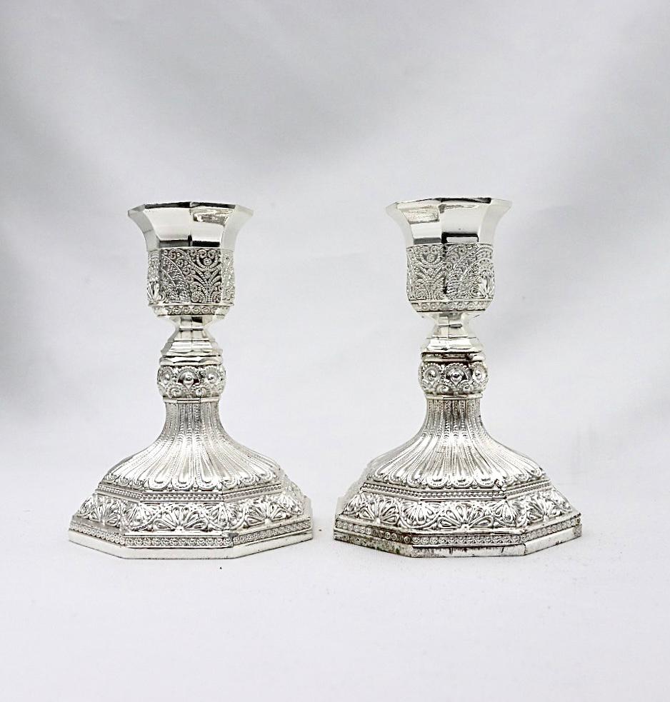 A pair of designed silver candlesticks