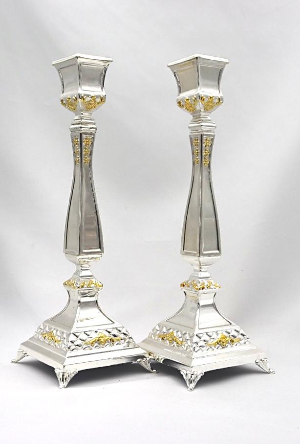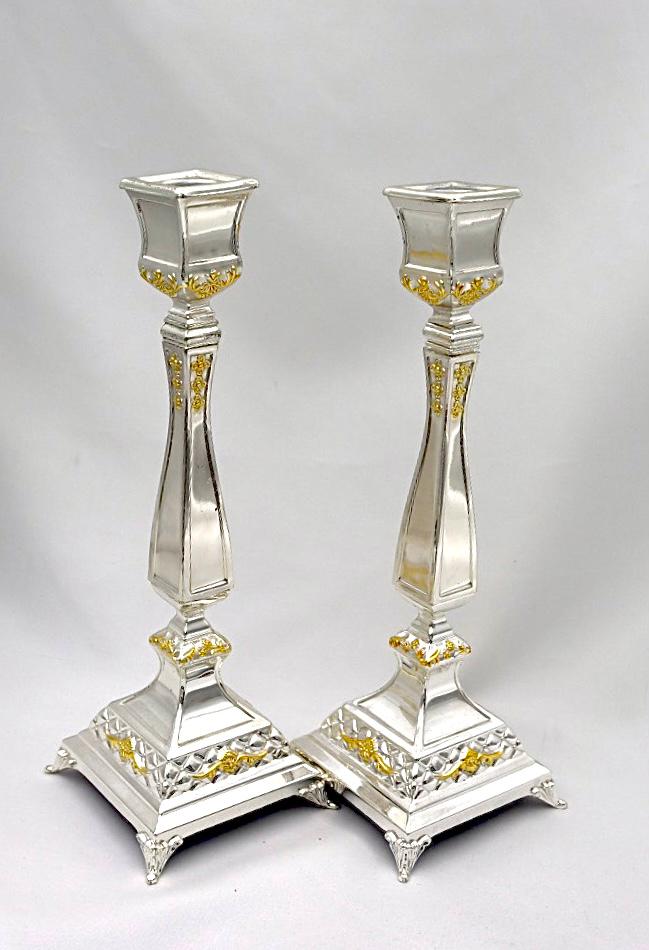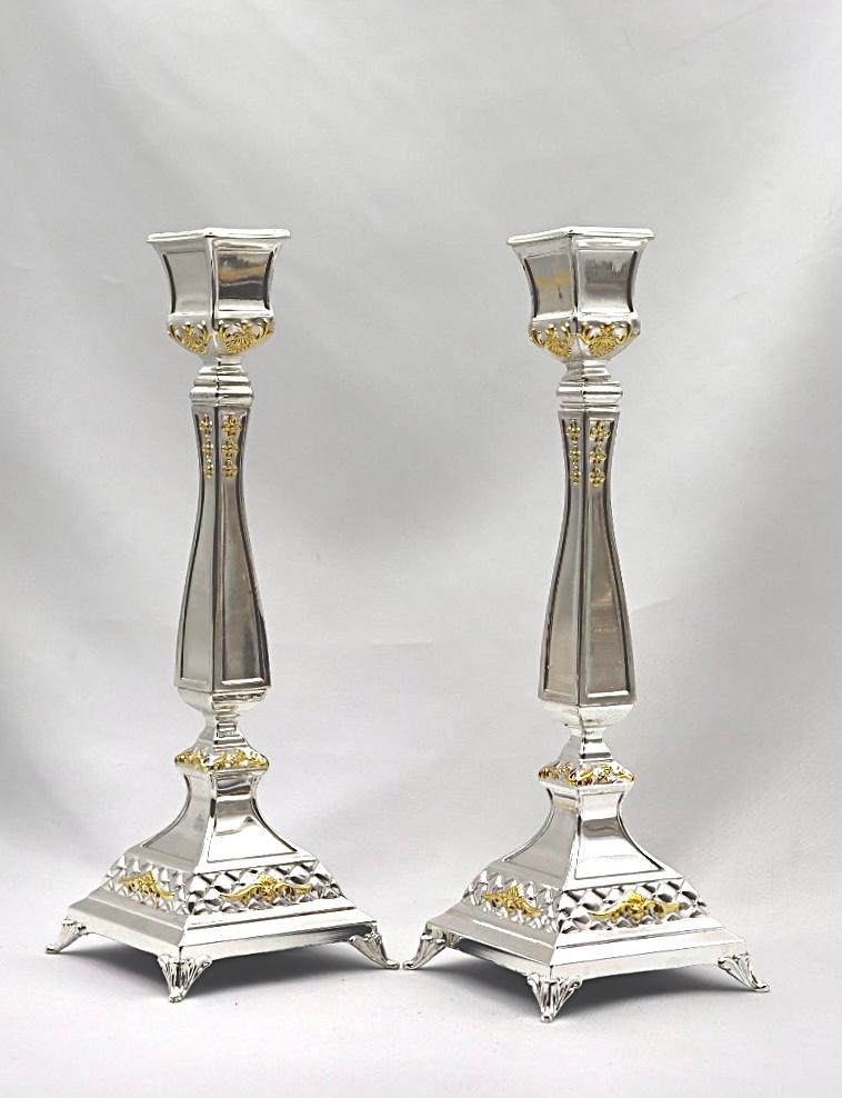 A pair of designed silver candlesticks
