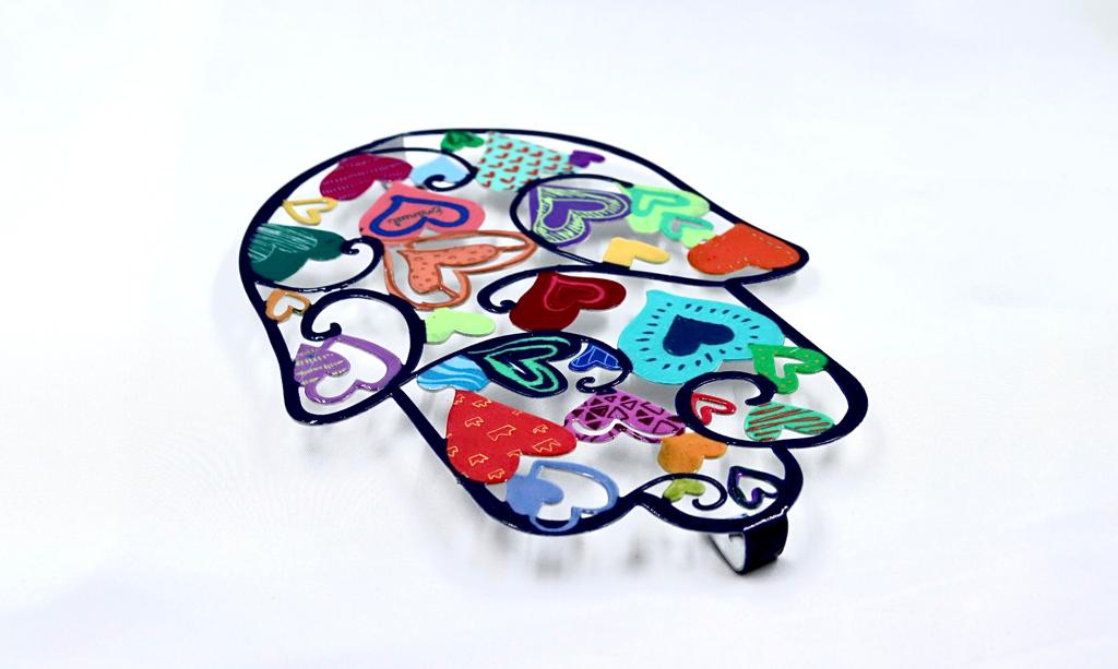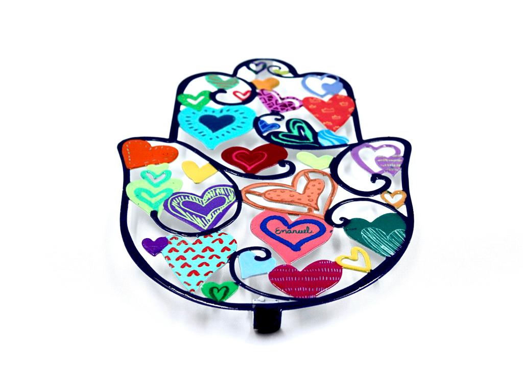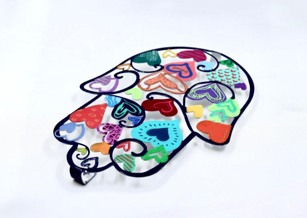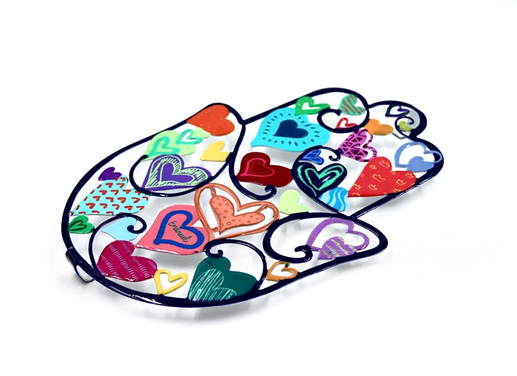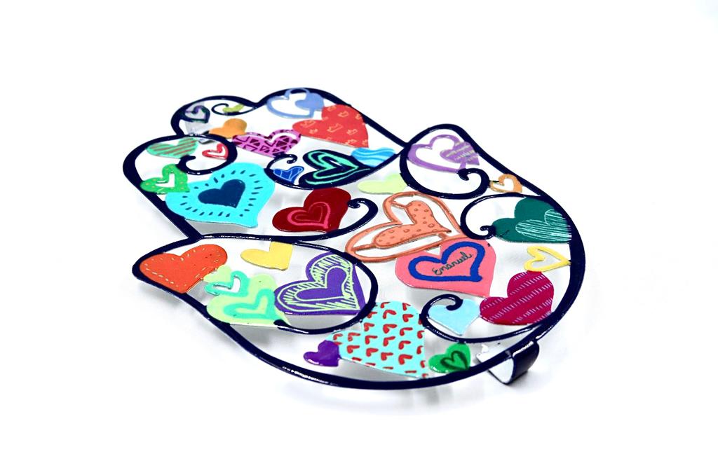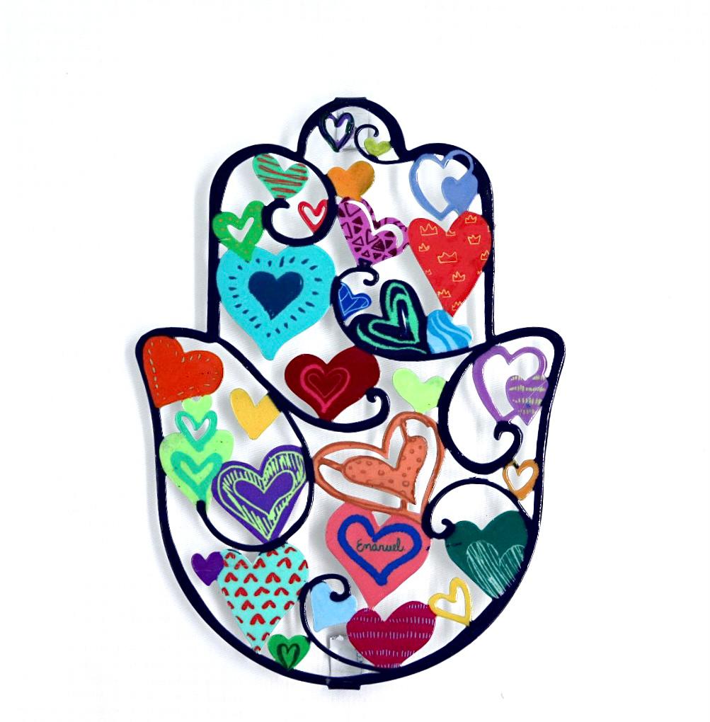 Hamsa for hanging made of aluminum hand-painted by the craftsman "Emmanuel"