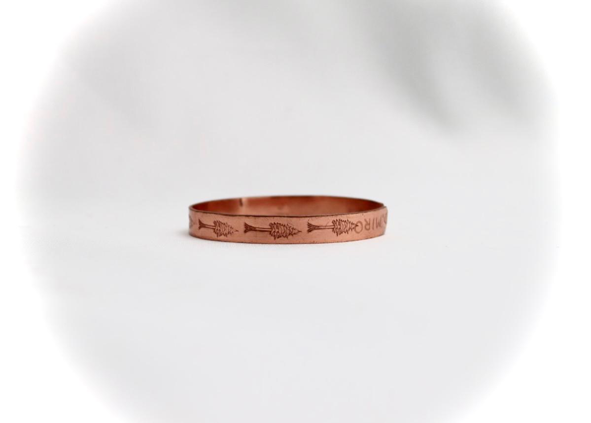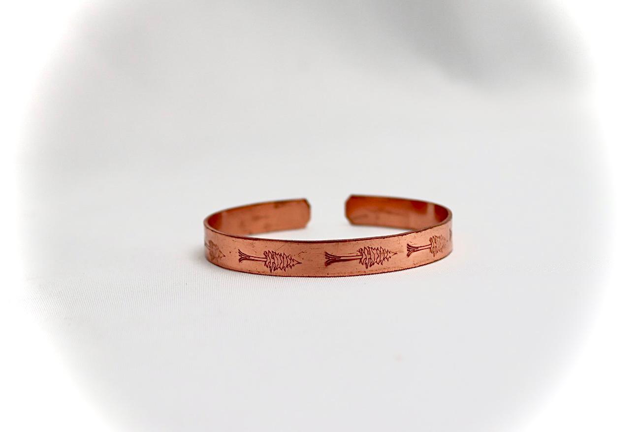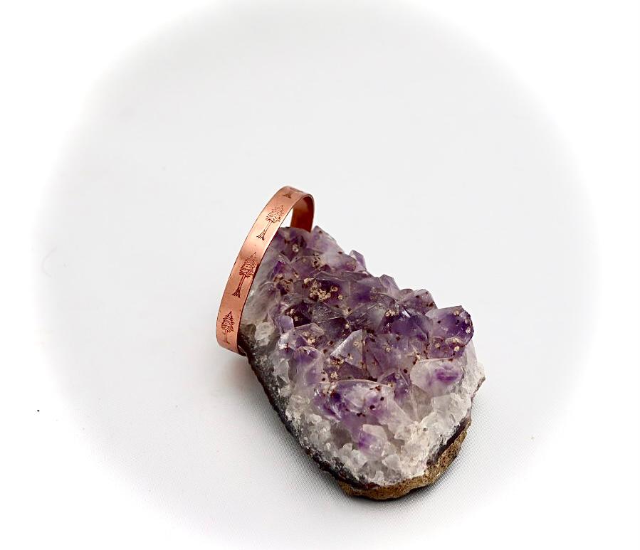copper bracelet with a cypress design