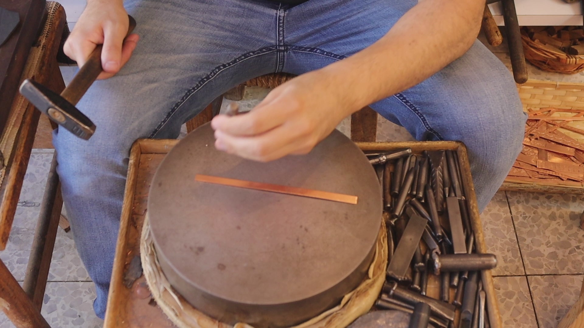 David Miro is an artisan who makes his own copper handicrafts in the city of Acre in Israel. David started the business with his father and grandfather in 1964, and now works with his children, who continue the art and management of the business.