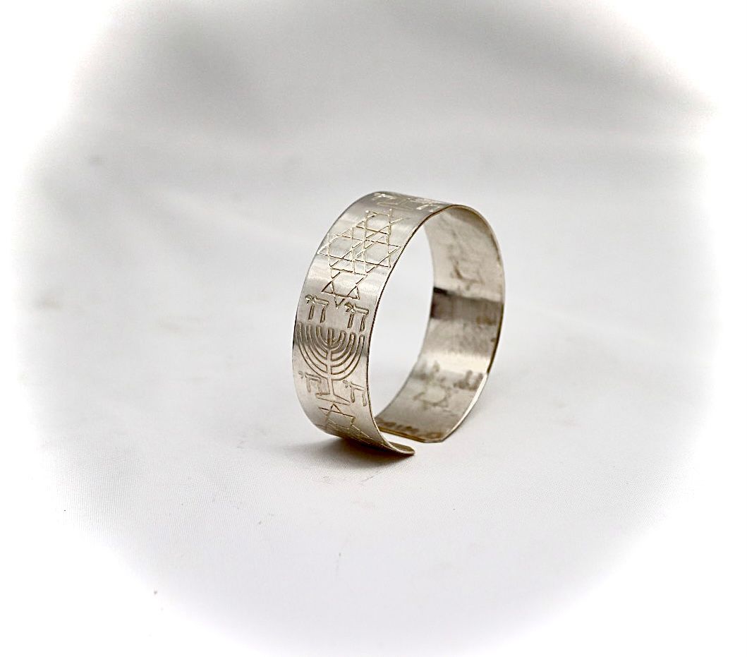 Menorah (the symbol Israel), Star of David and HAY (life).