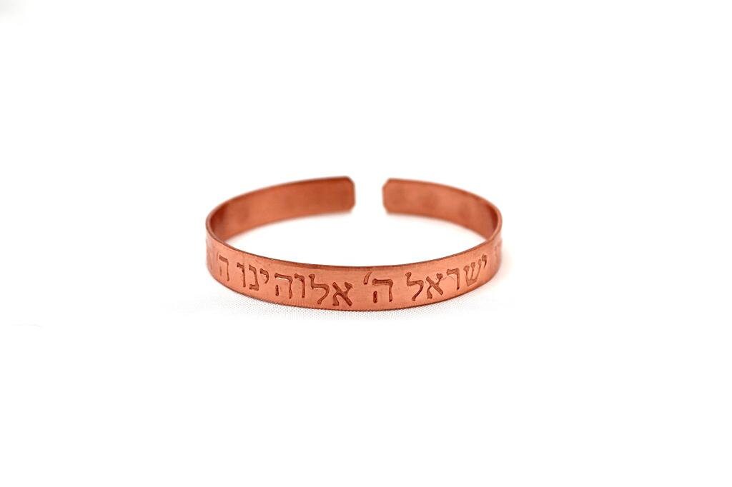 copper bracelet with:״Hear O Israel, the Lord our God the Lord is One״ in Hebrew