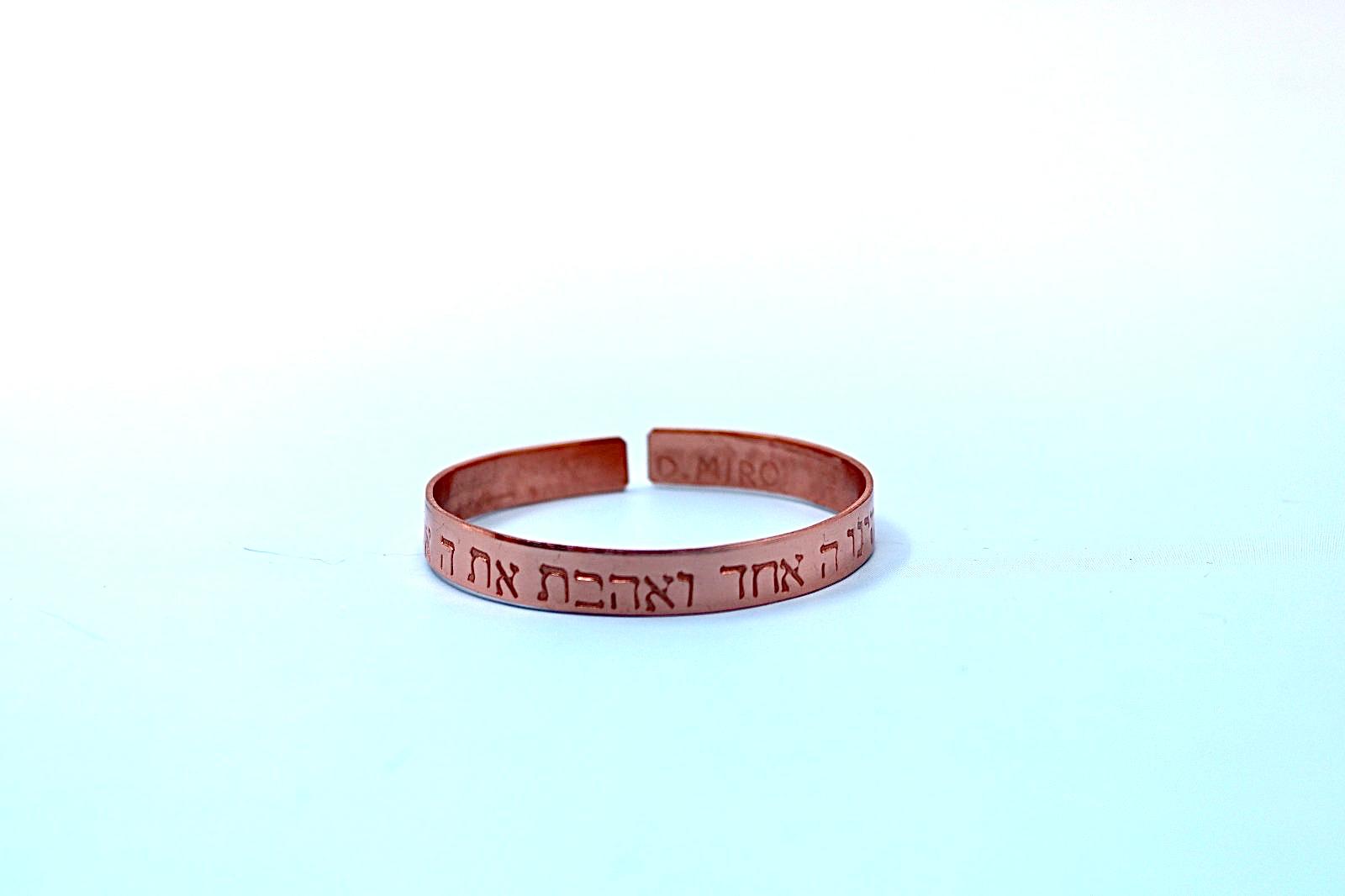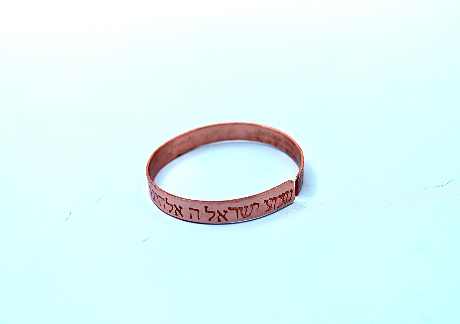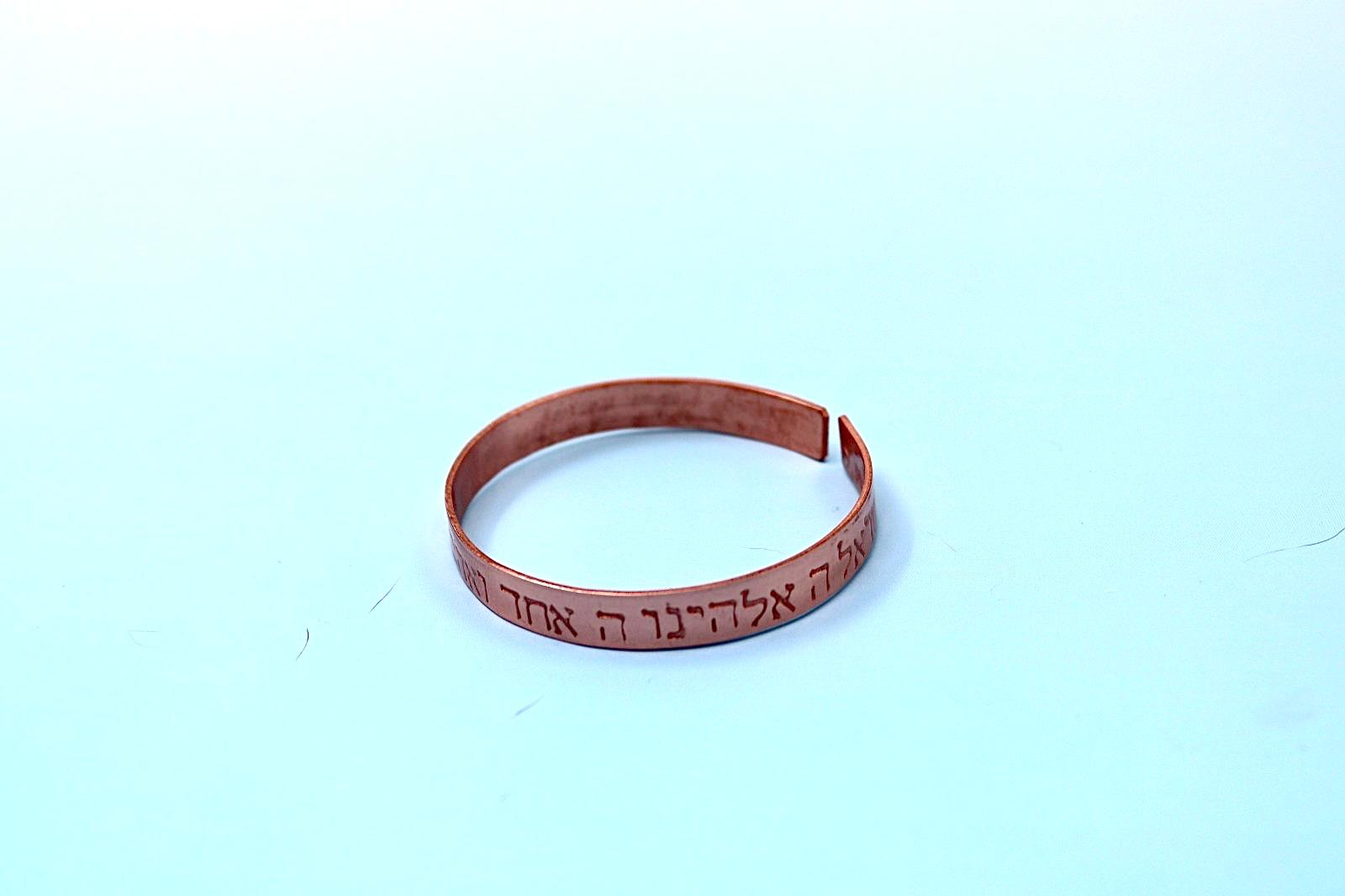 copper bracelet with Shema Israel blessing