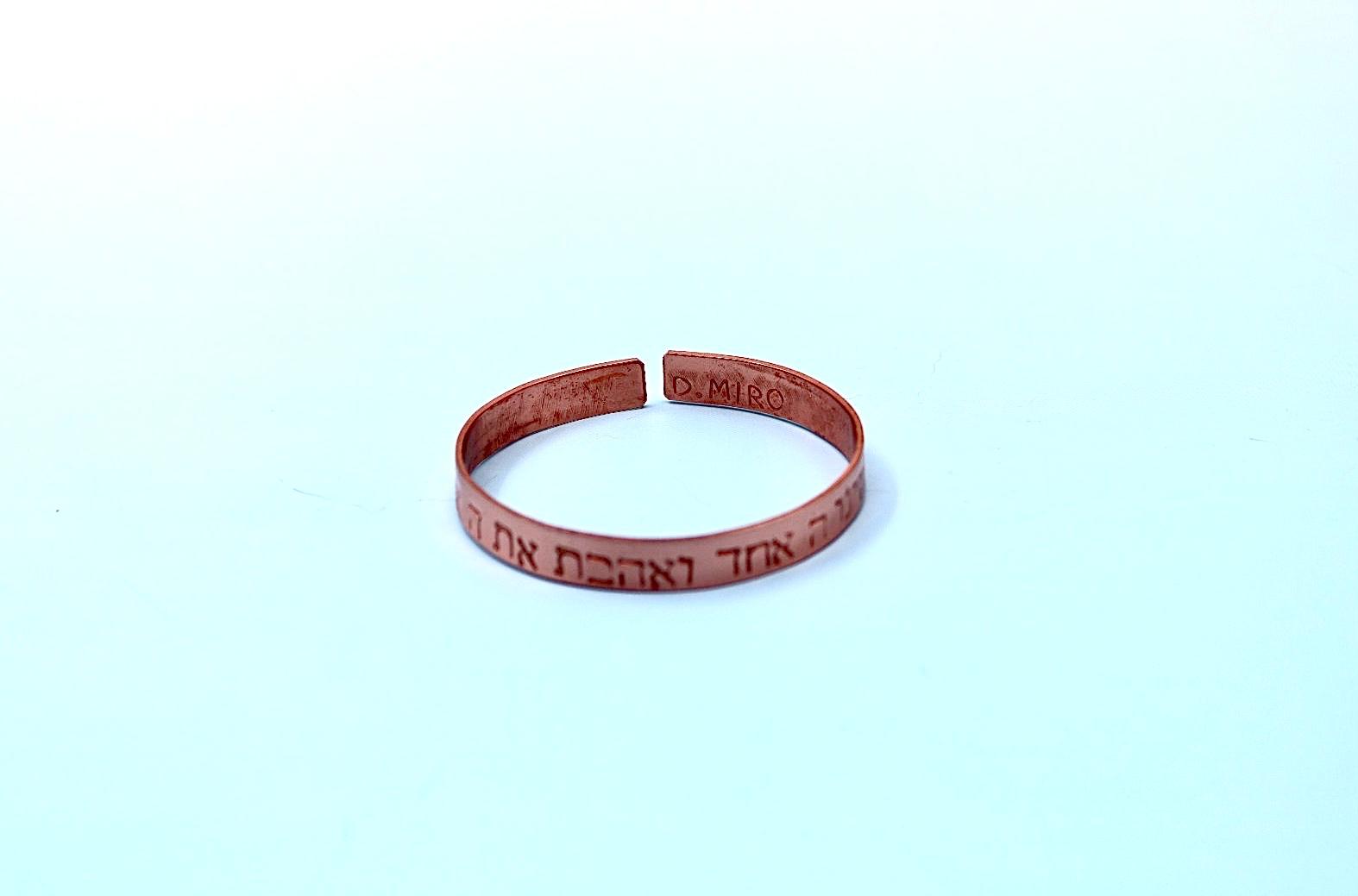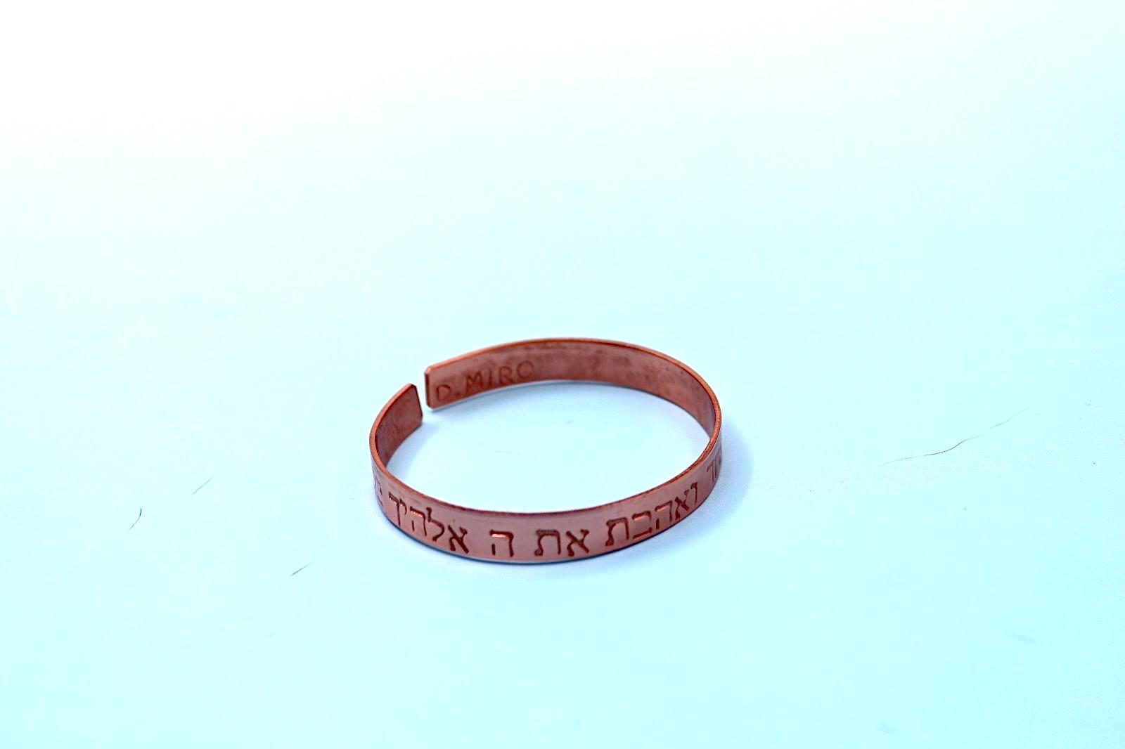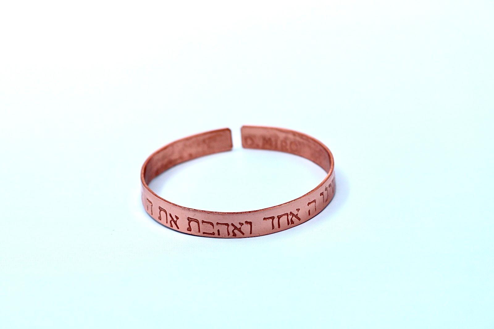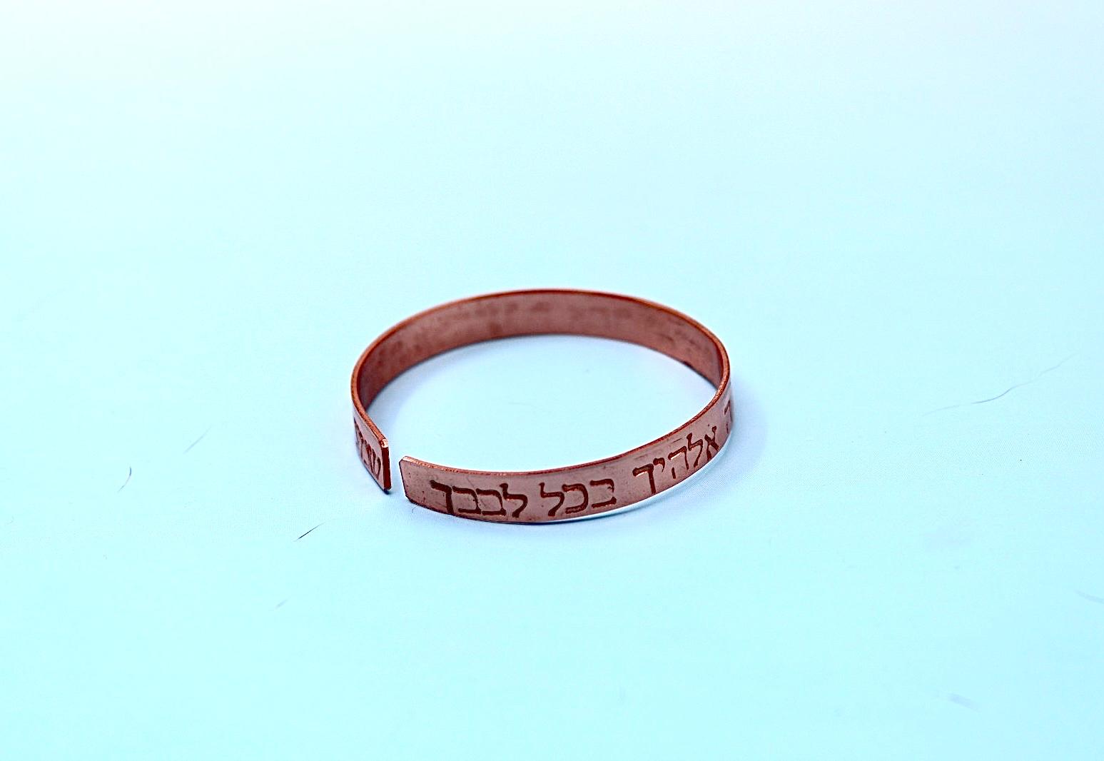 copper bracelet with Shema Israel blessing