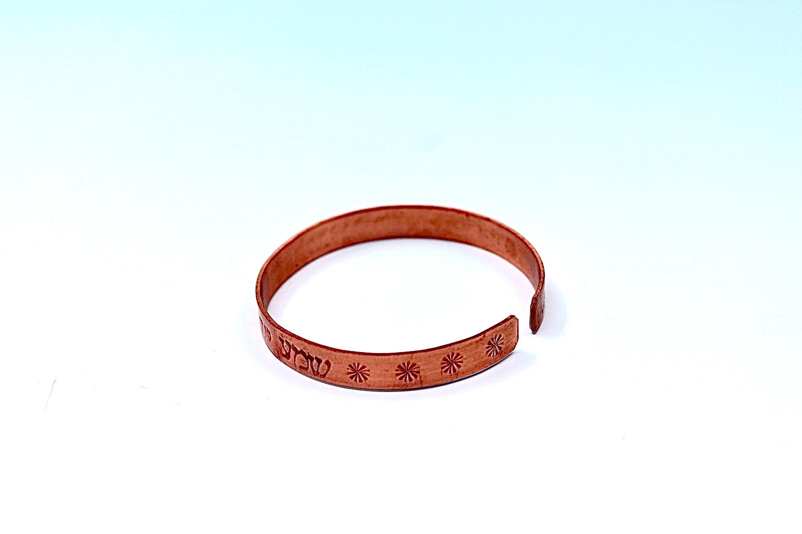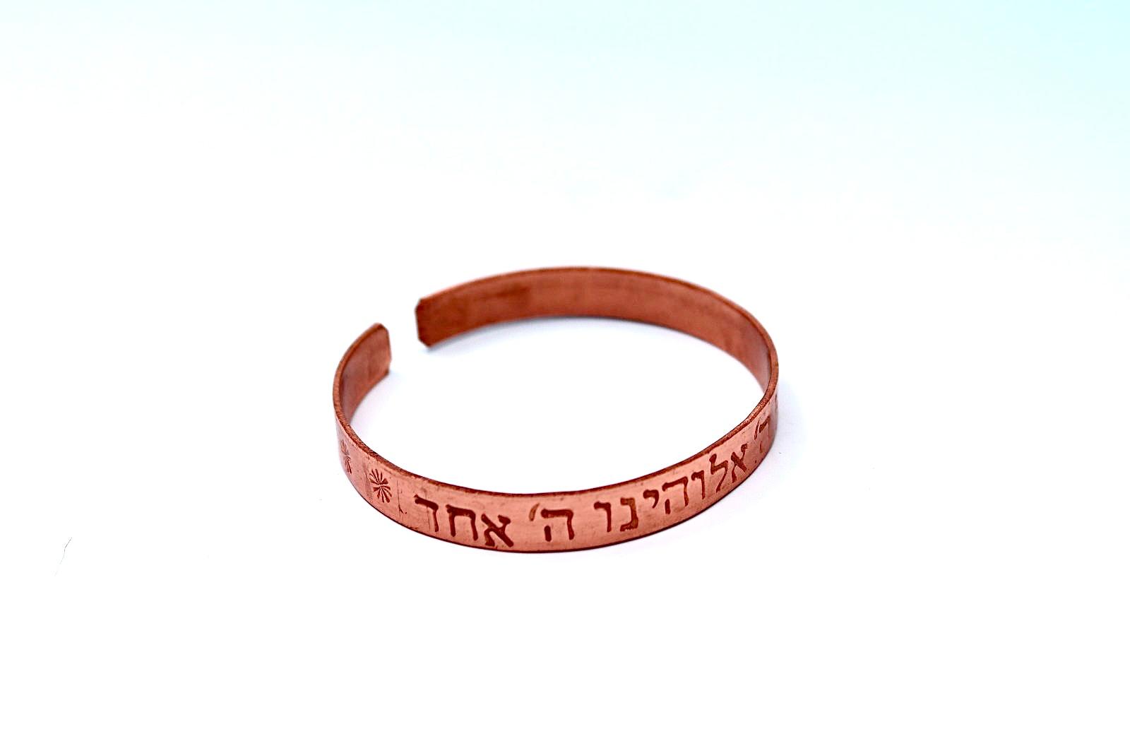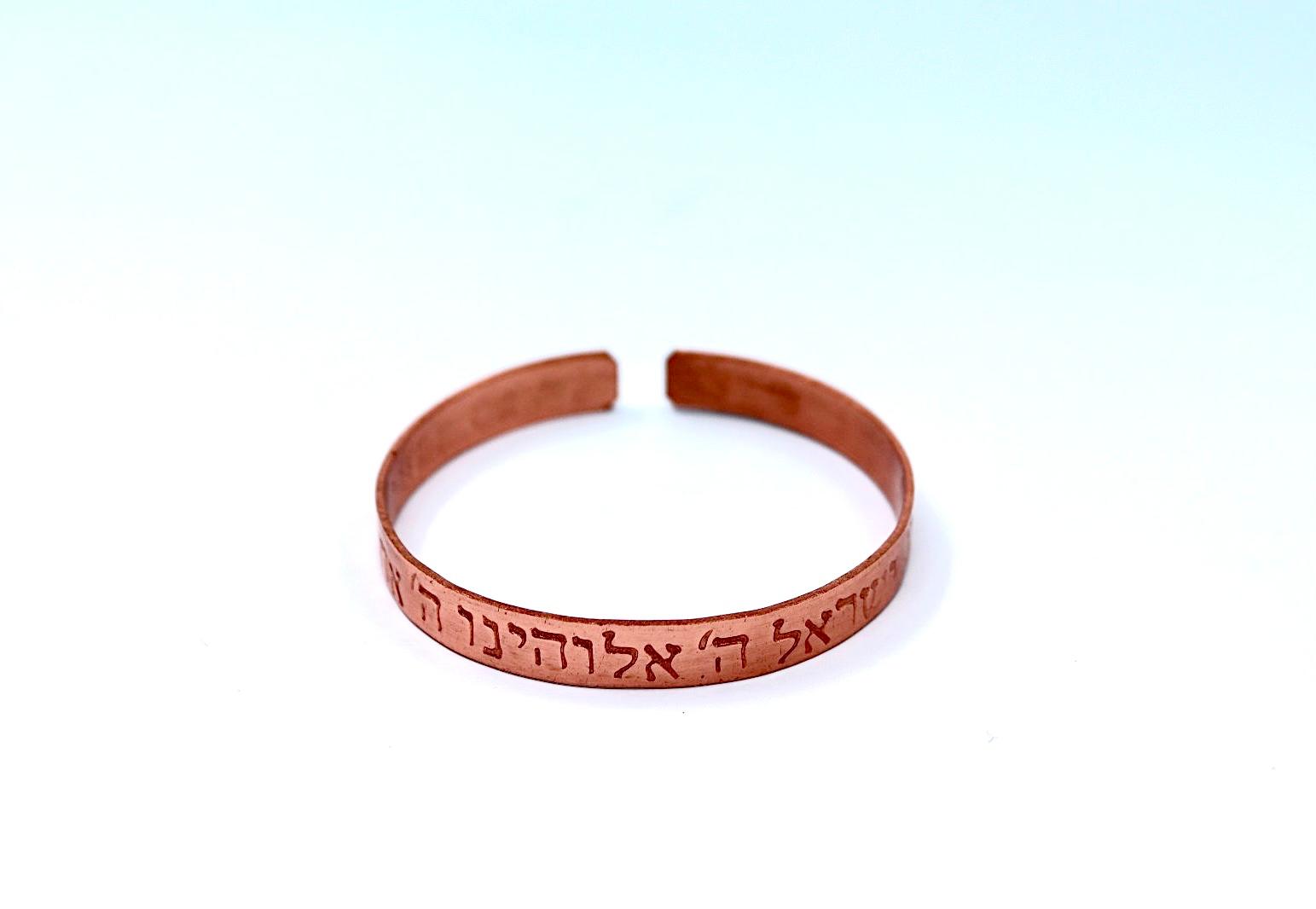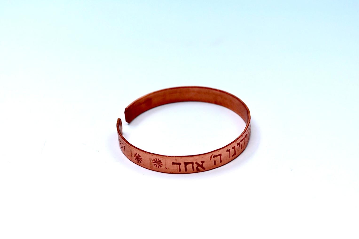 Hammered copper bracelet Shema Israel prayer : ״Hear O Israel, the Lord our God the Lord is One" in Hebrew.
