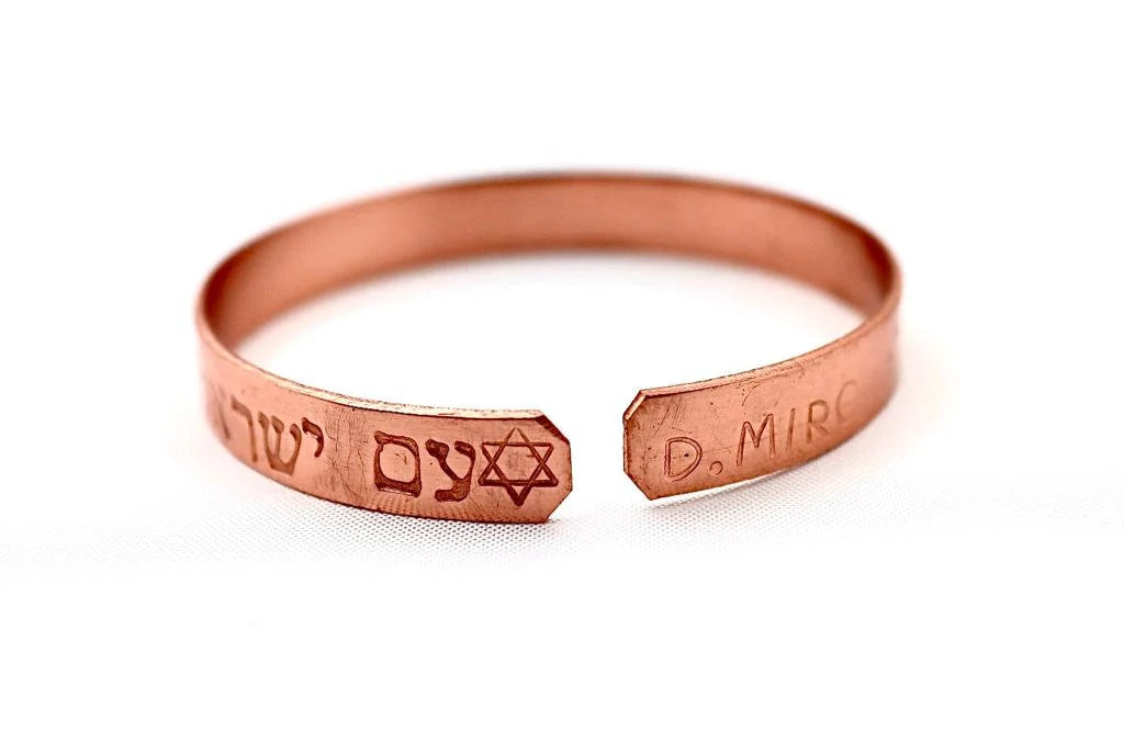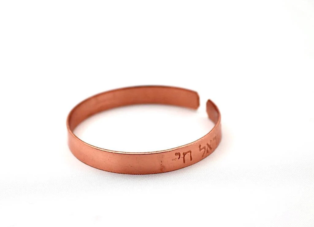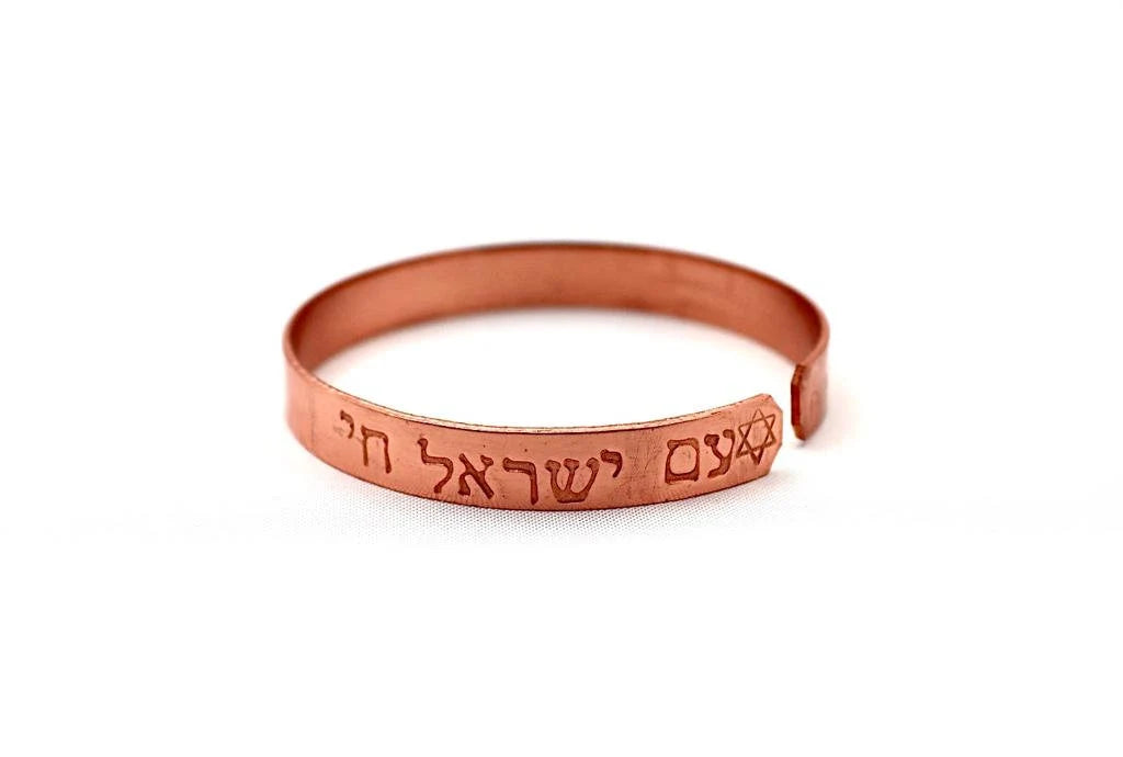 Hammered copper bracelet ״the nation of Israel lives״ in Hebrew
