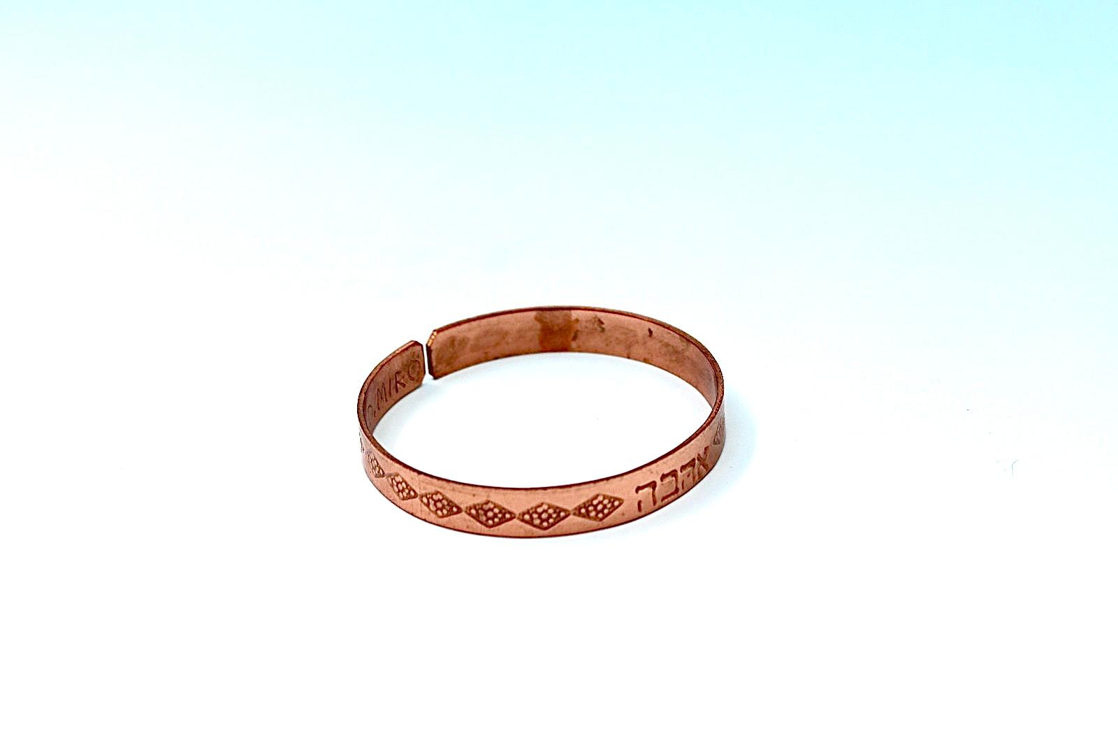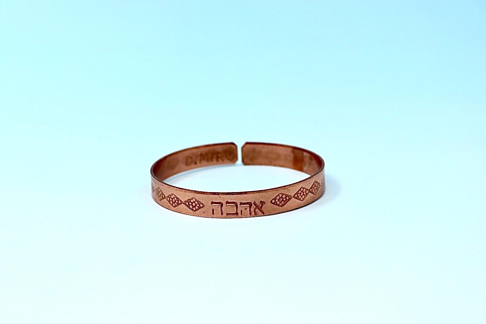 copper bracelet written:״LOVE ״ in Hebrew