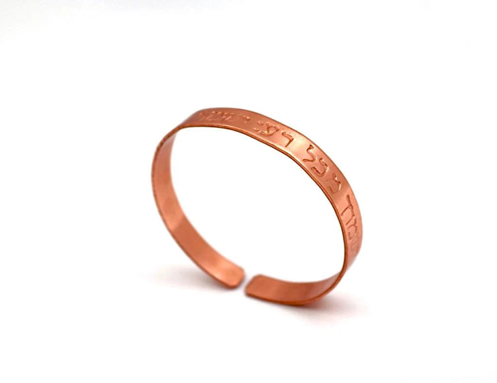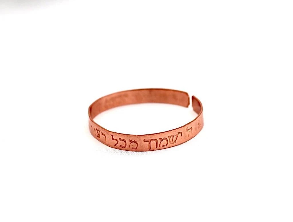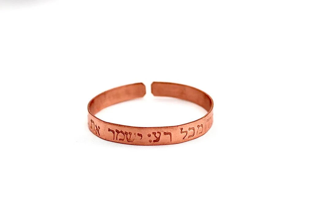 Hand-hammered copper bracelet with the inscription " The LORD shall keep thee from all evil; He shall keep thy soul." in Hebrew