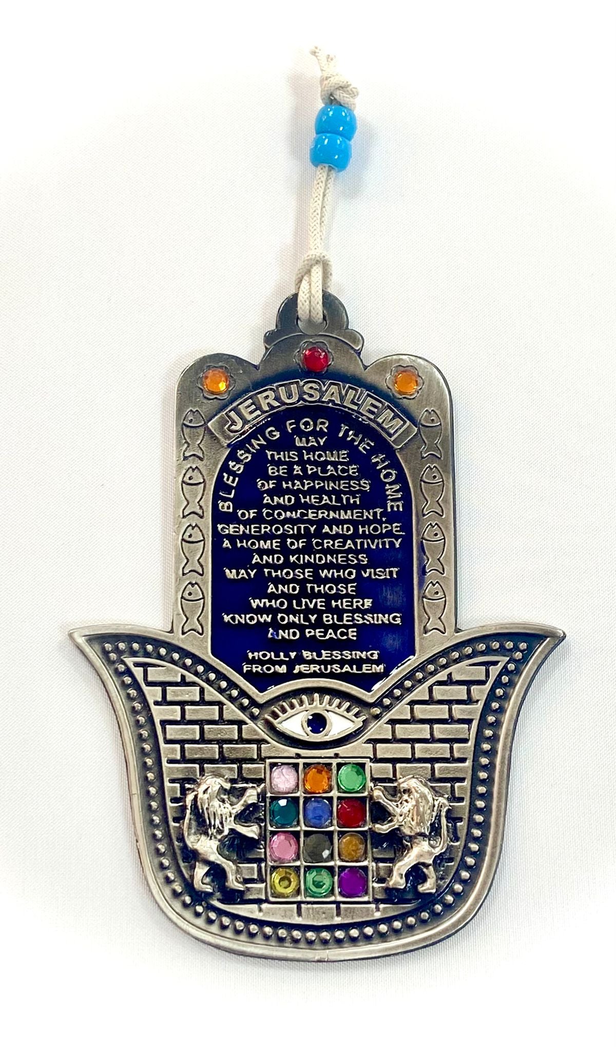 hamsa with blessing for the home in English and the 12 breastplate stones.