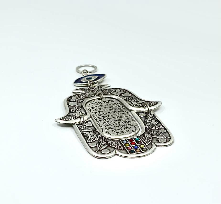 hamsa with blessing for the home in Hebrew made from 3 parts and eye against the evil eye