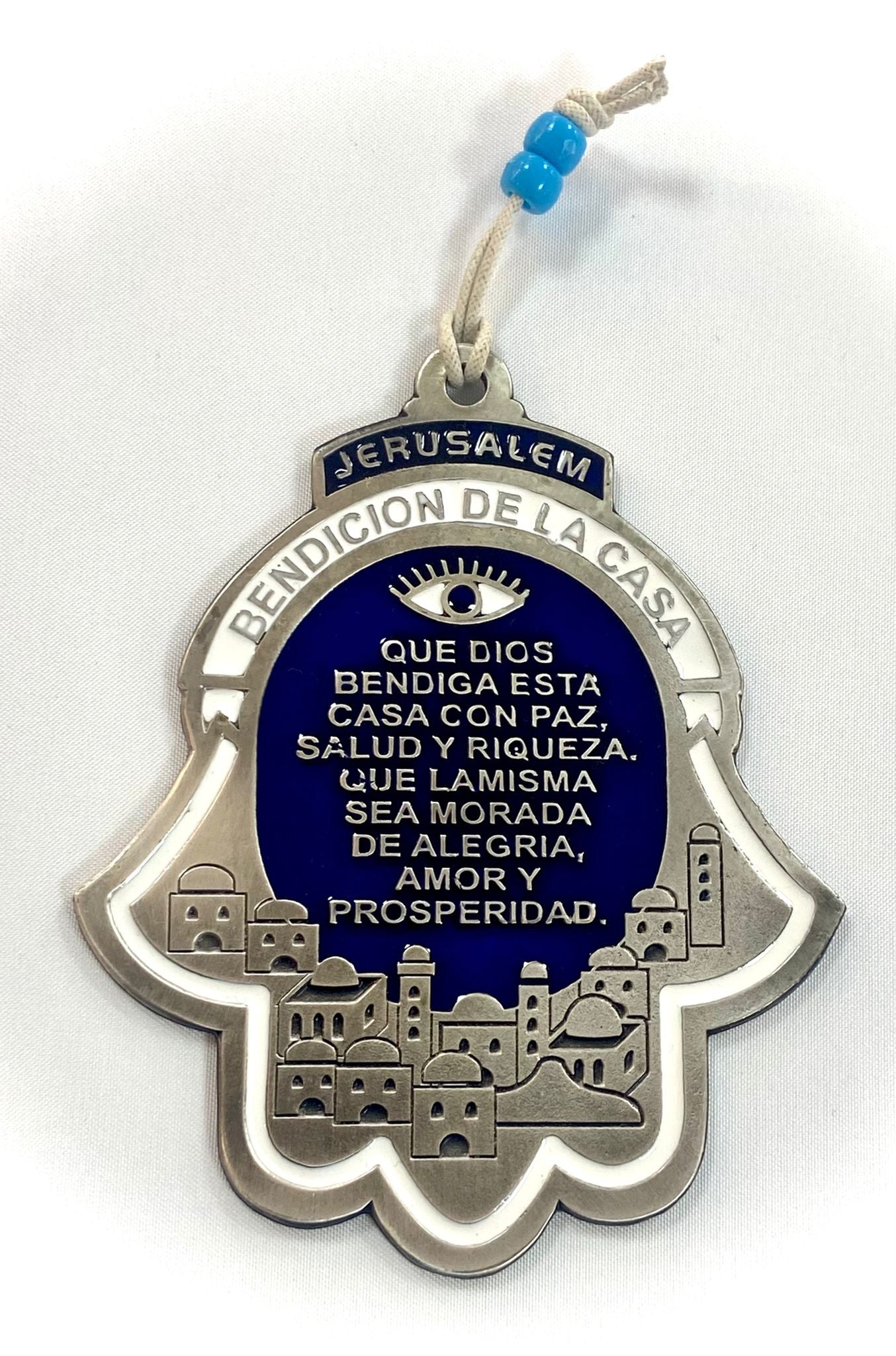 hamsa with blessing for the home in Spanish and Jerualsem design