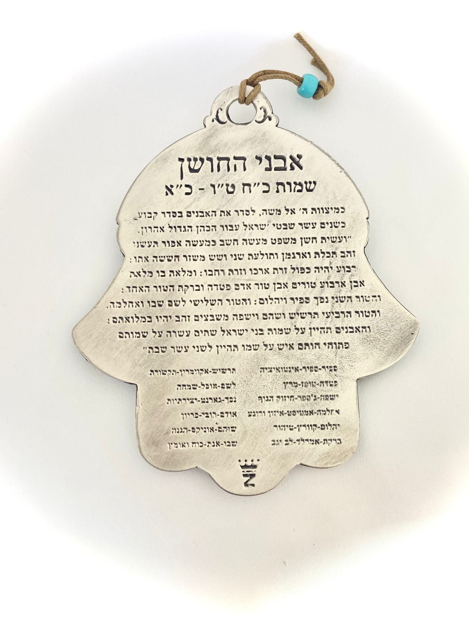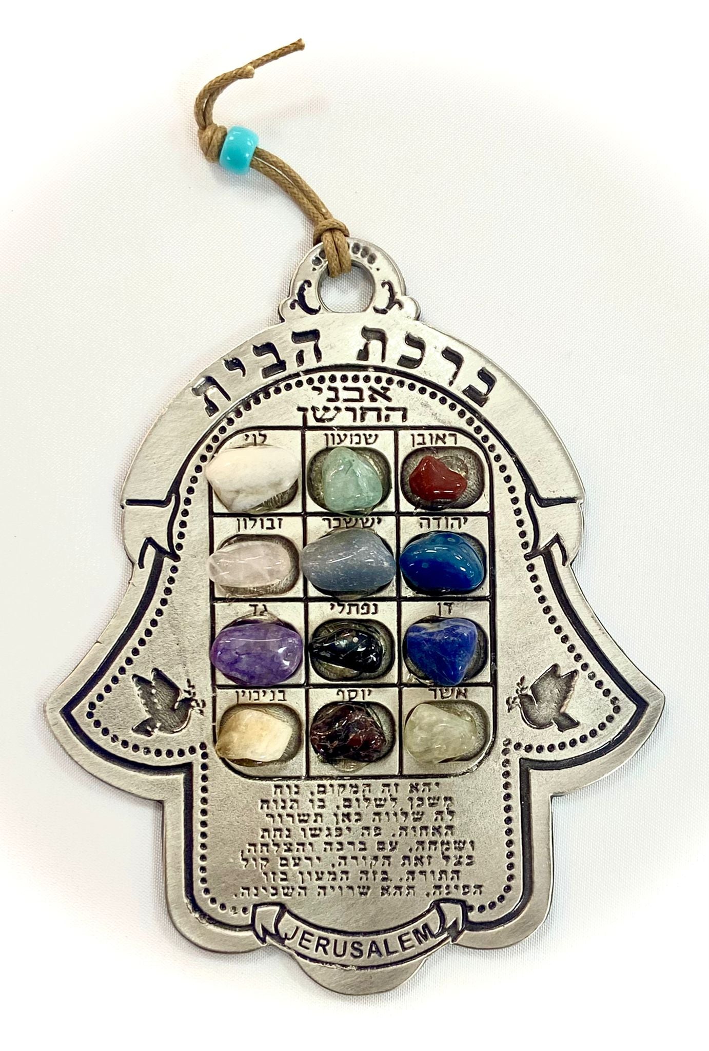 hamsa with the 12 breastplate stones and blessing in Hebrew.