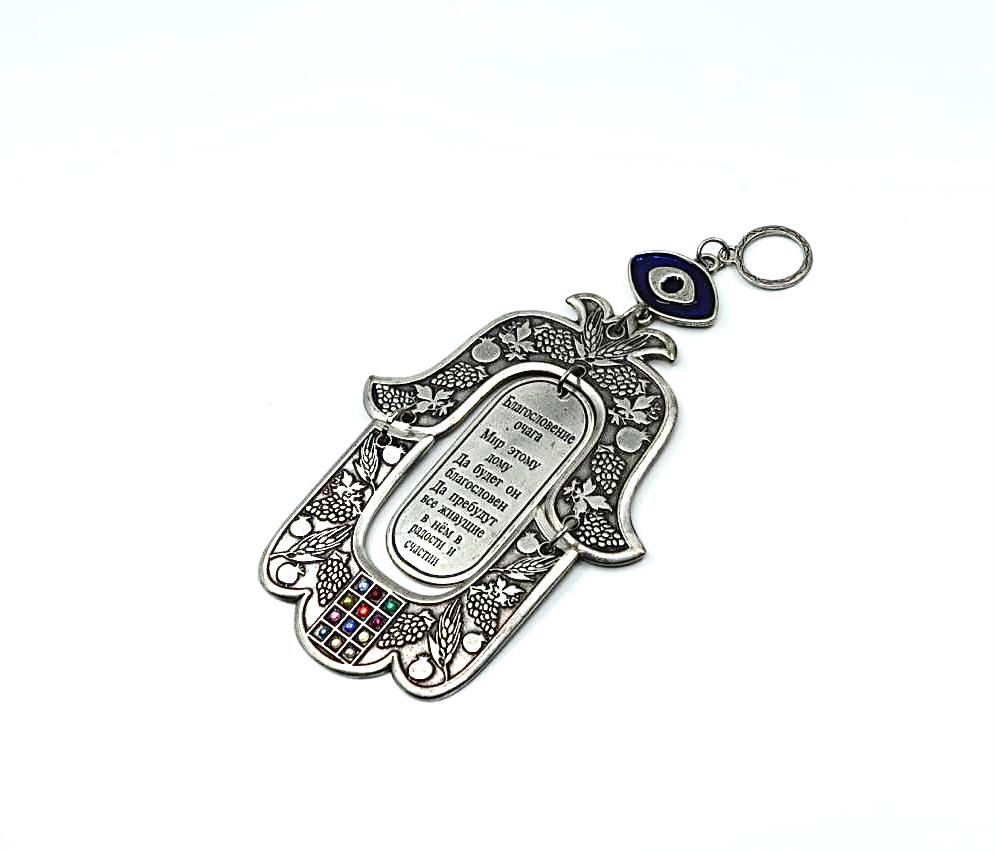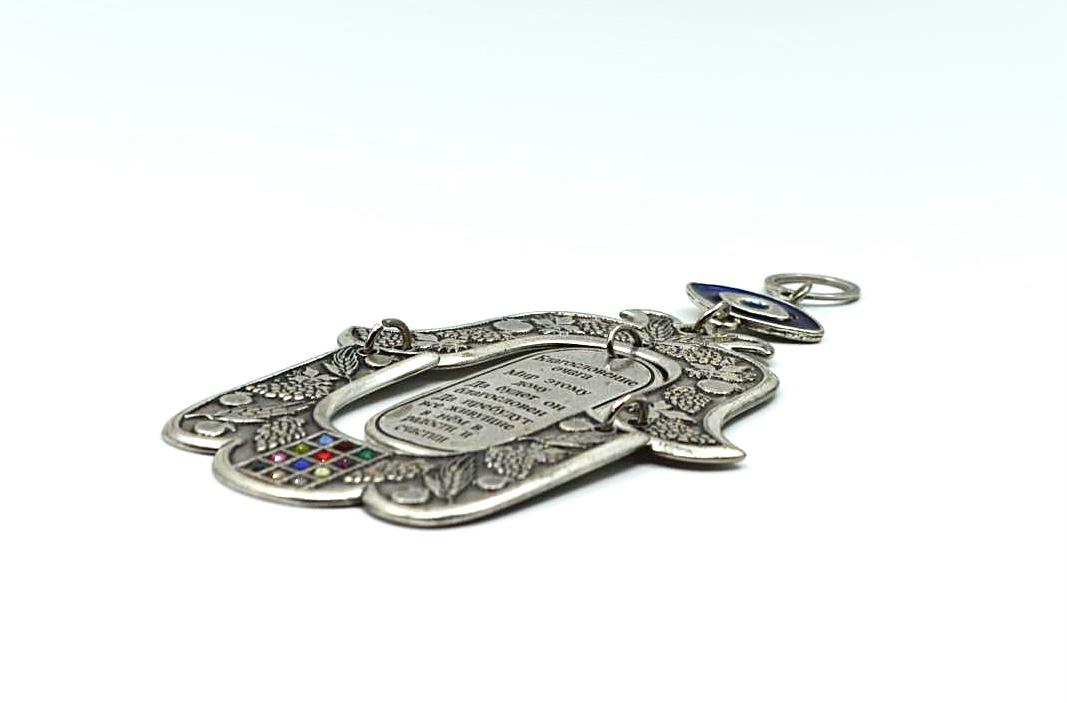 Hamsa designed with the blessing of the home in Russian . Made of pewter - gray color.