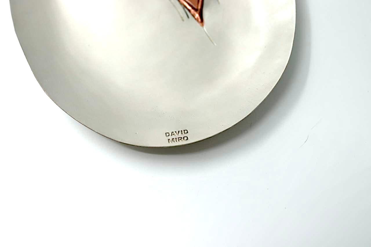 This copper hammered work is a unique piece and is signed by the artist David Miro.