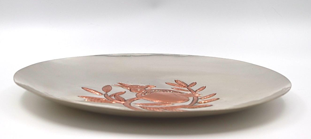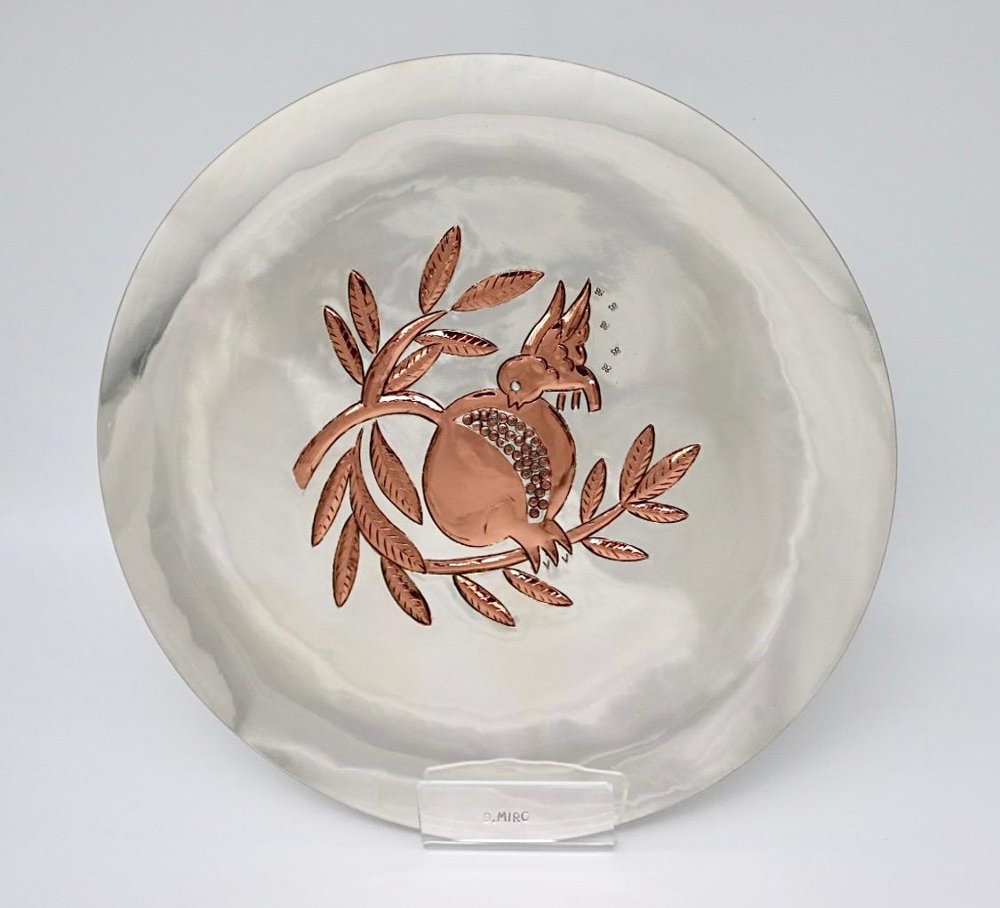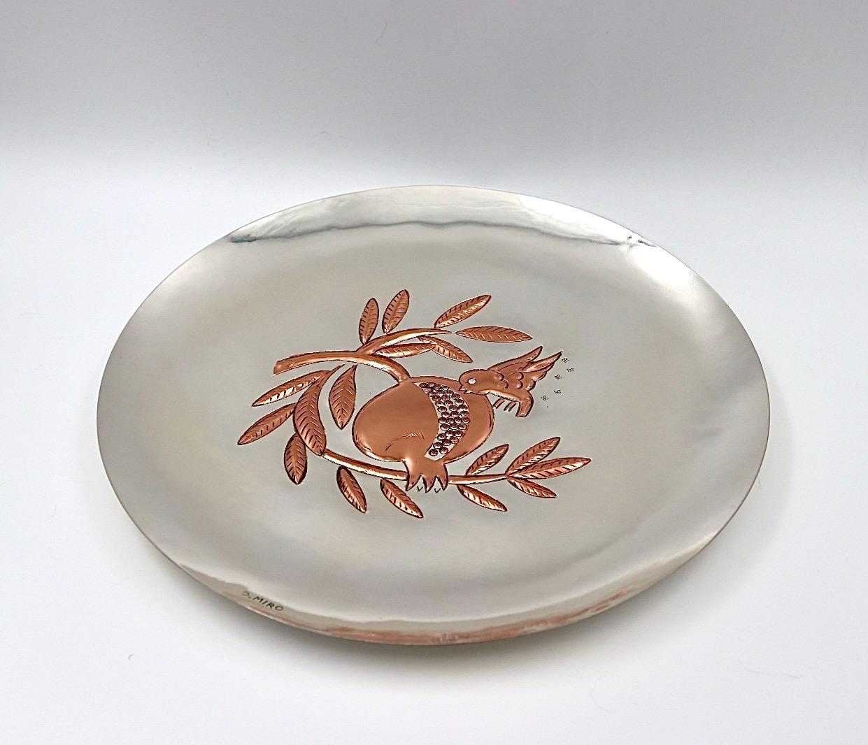 This copper hammered work is a unique piece and is signed by the artist David Miro.