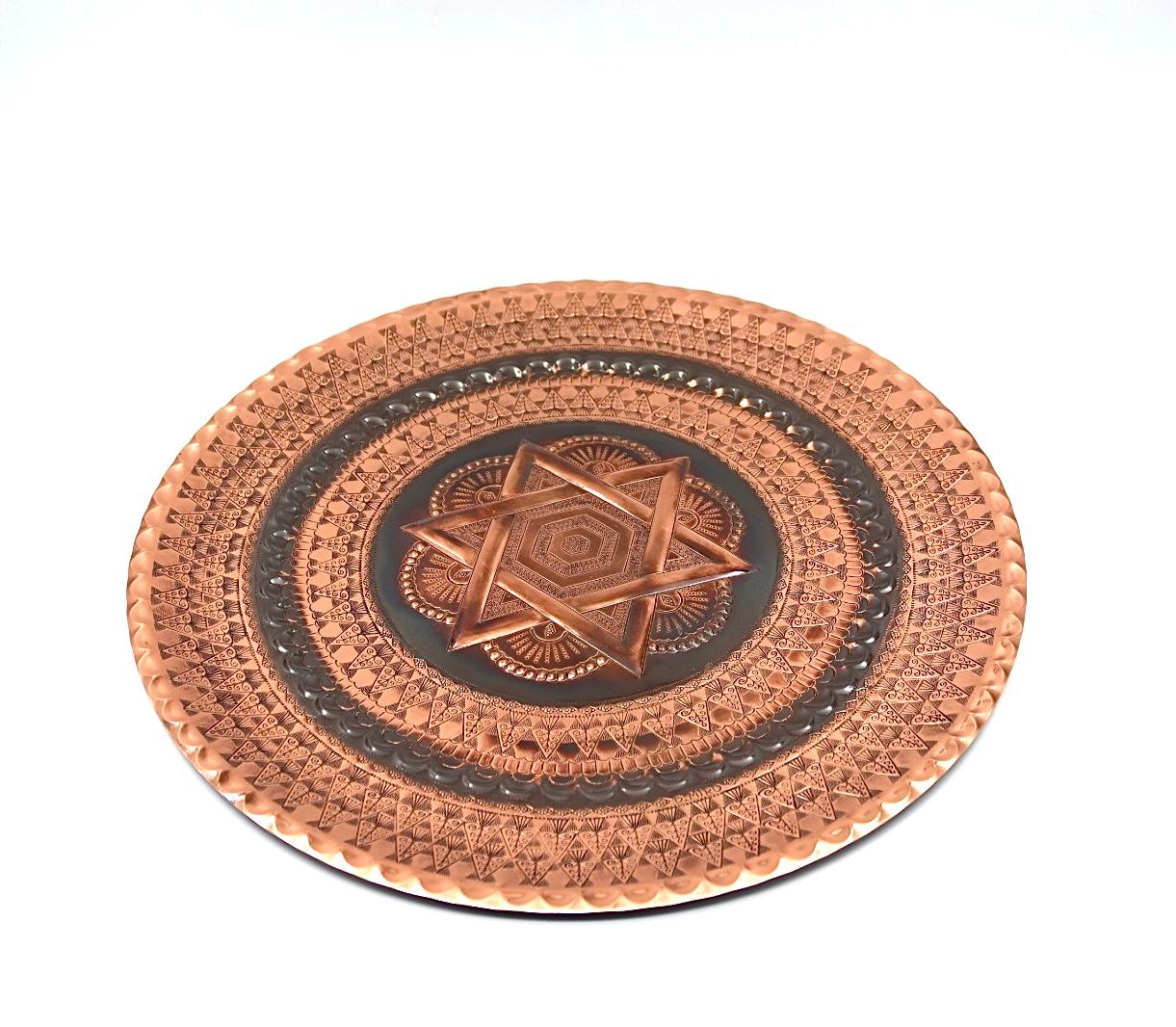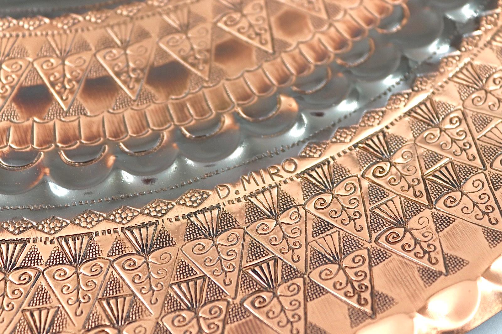 This copper hammered work is a unique piece and is signed by the artist David Miro.
