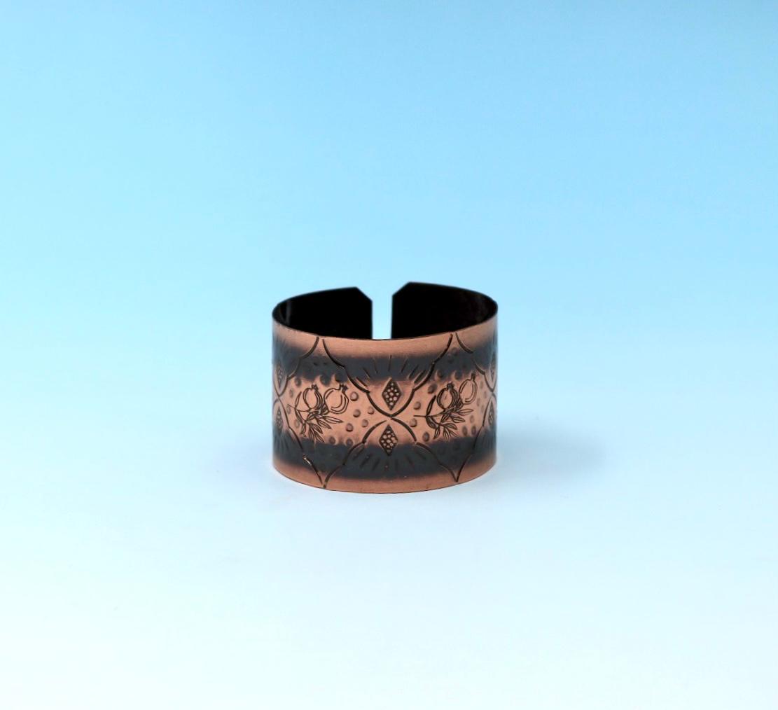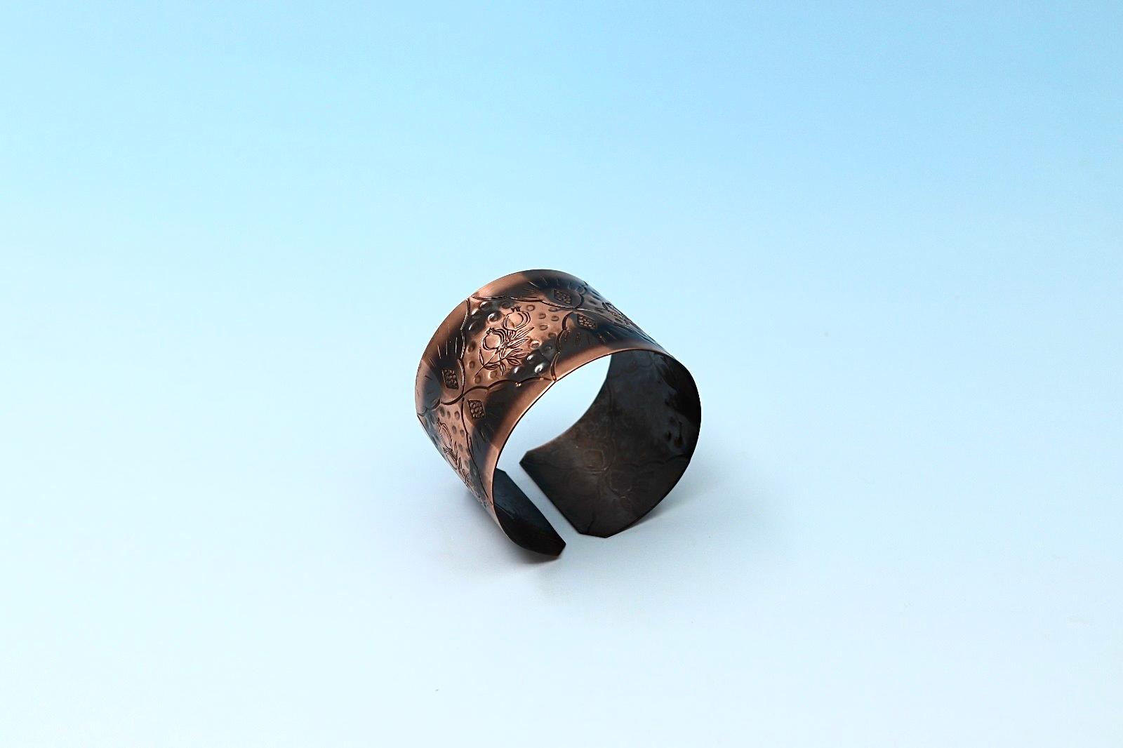 Handmade oxides copper bracelet, with Pomegranates design
