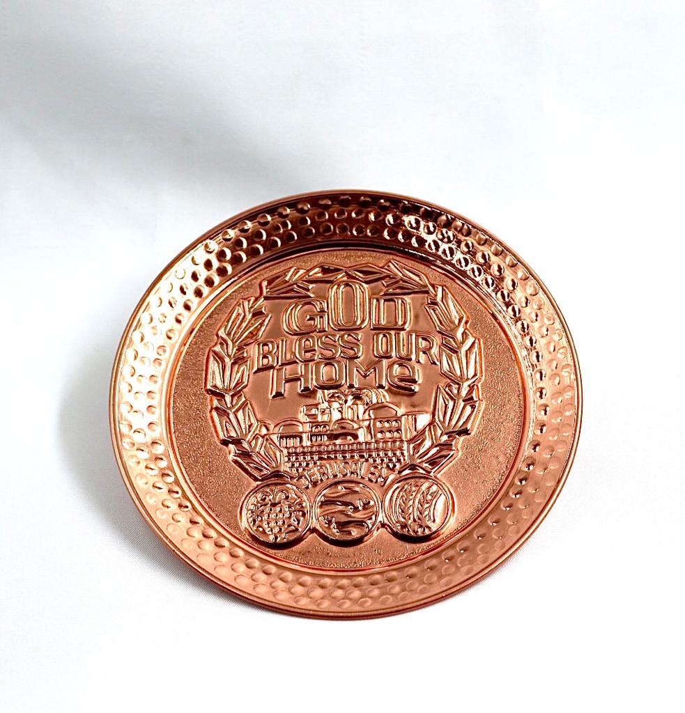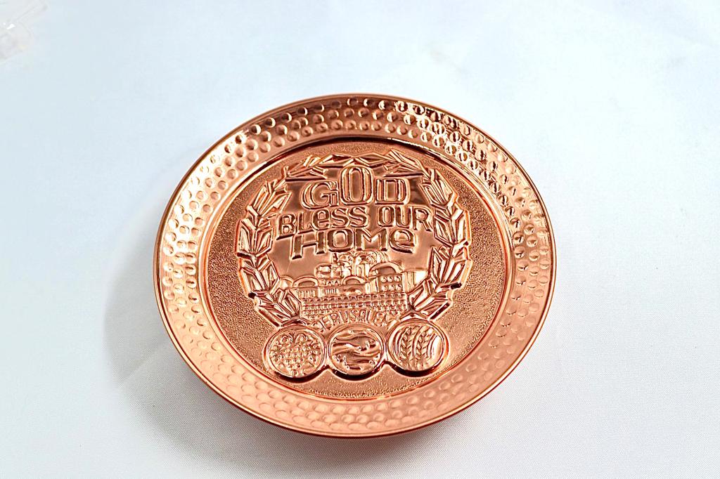 Handmade copper hammered by home blessing. Lacquered and heated in the oven to prevent discolouration.