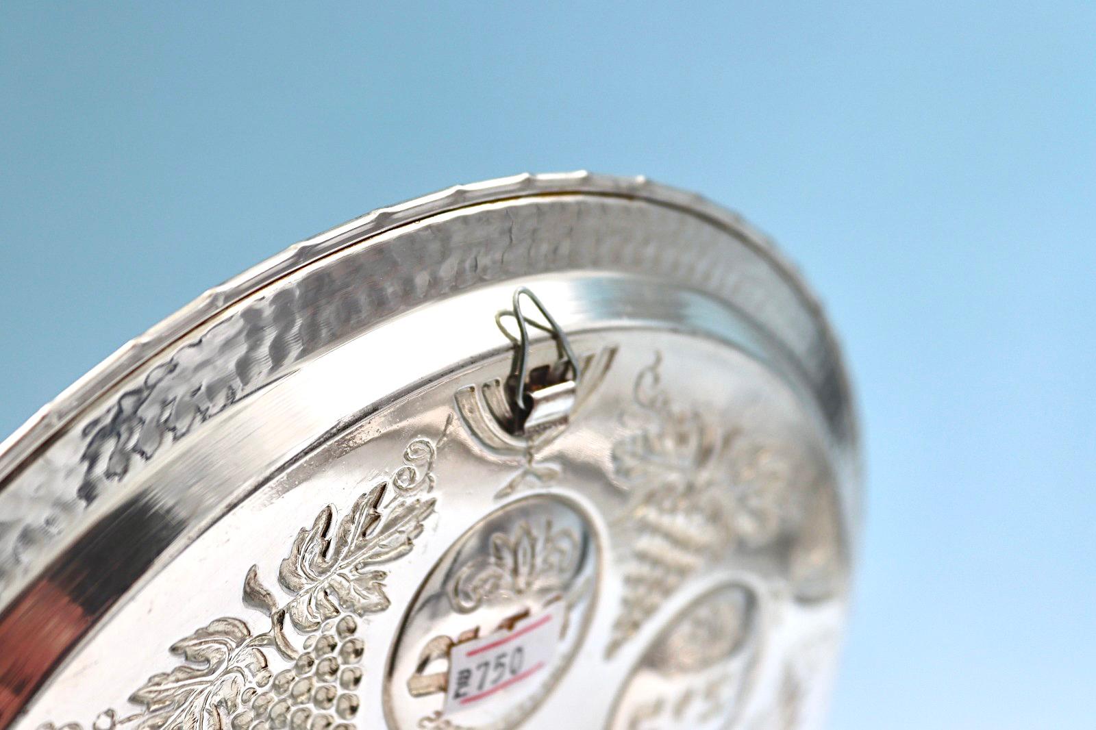 Handmade hammering made of copper or brass with a combination of silver.