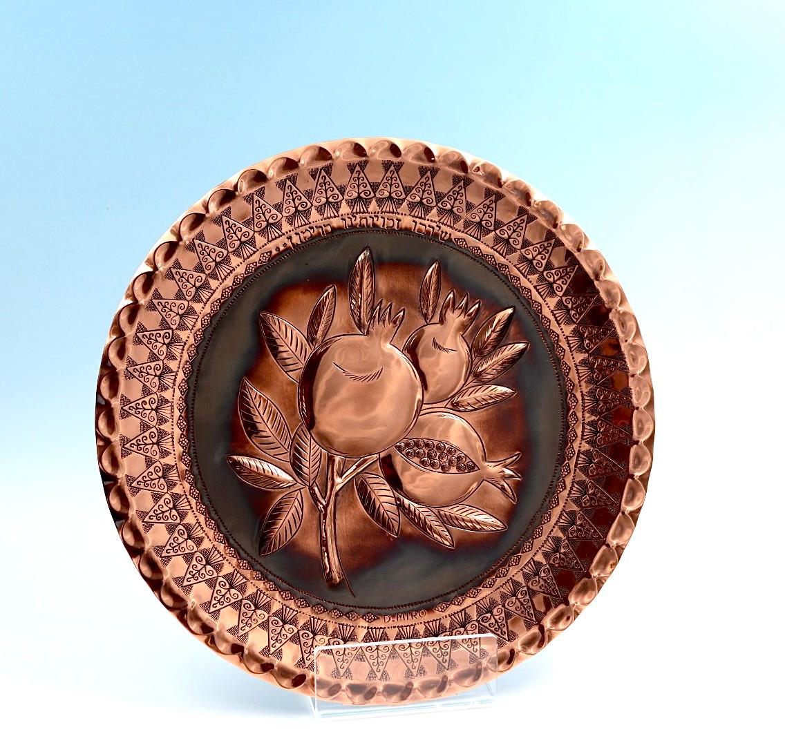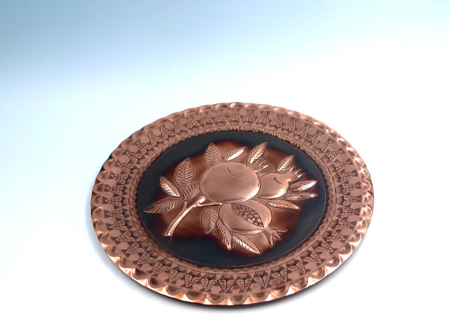 Handmade copper hammered pomegranate. Partially blackened copper, lacquered and heated in the oven to prevent discolouration.