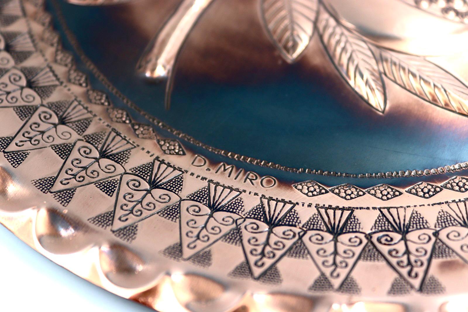 This copper hammered work is a unique piece and is signed by the artist David Miro.