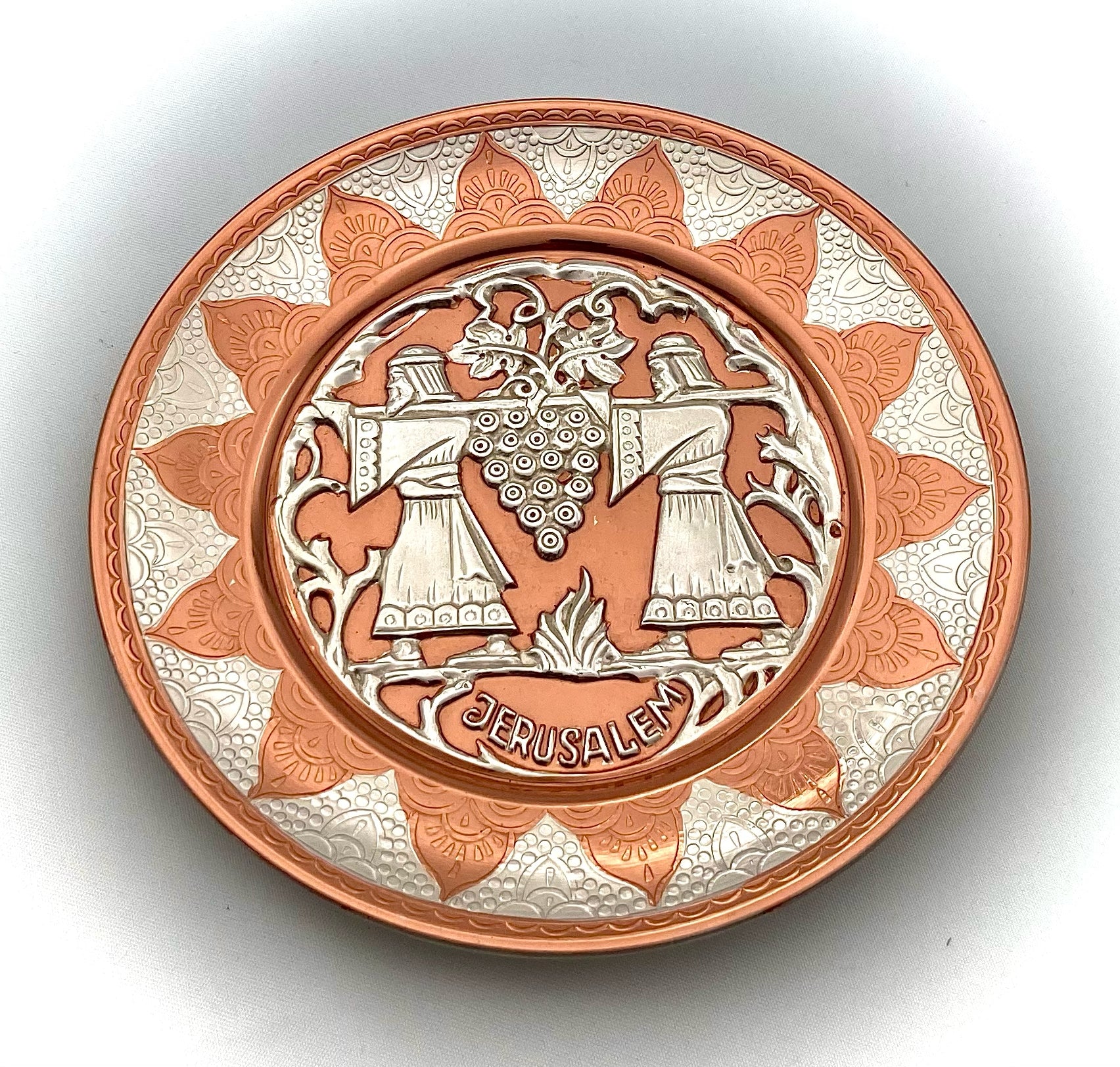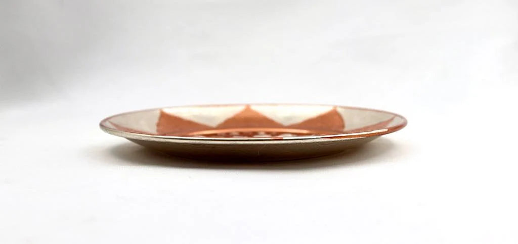 copper artwork with silver plated, lacquer coated and baked in the oven.