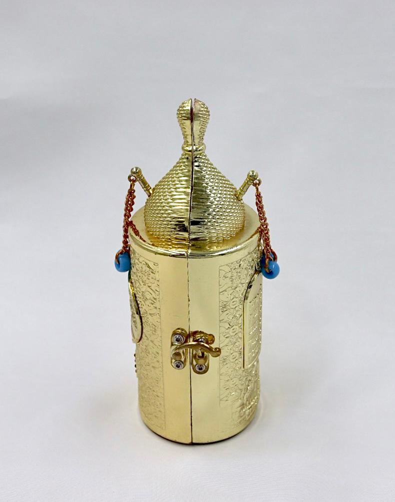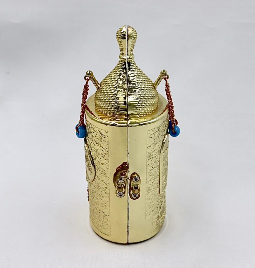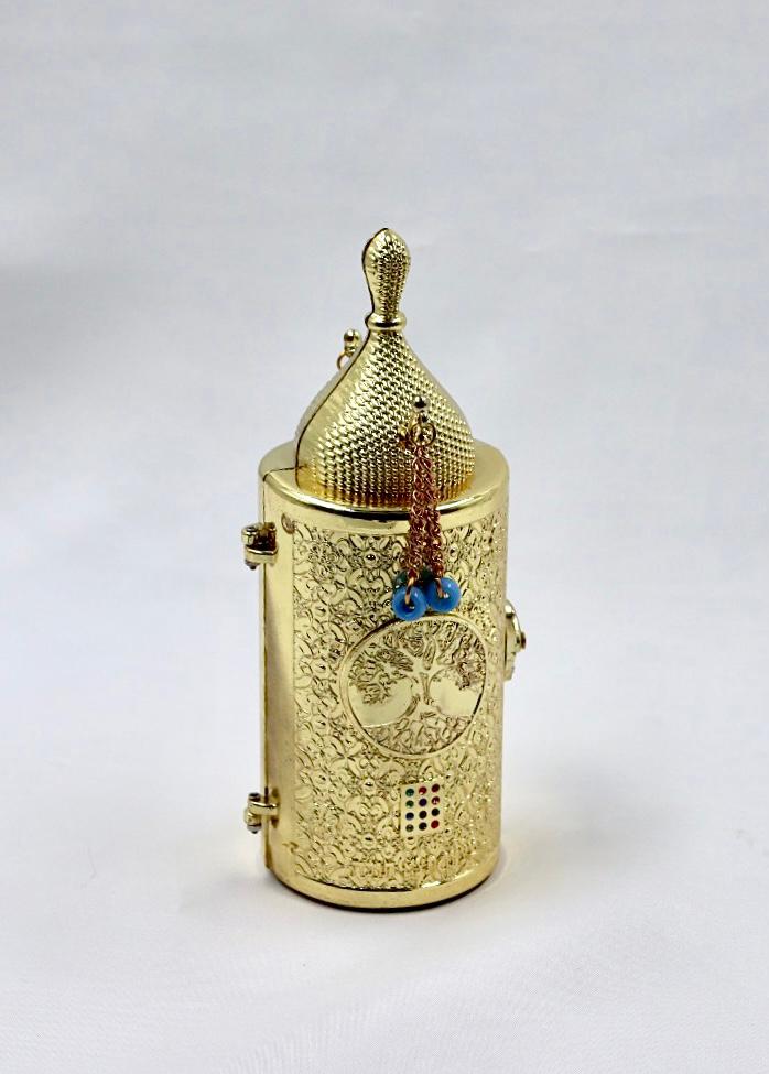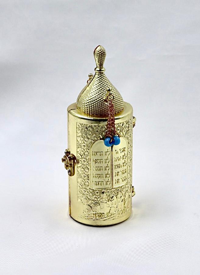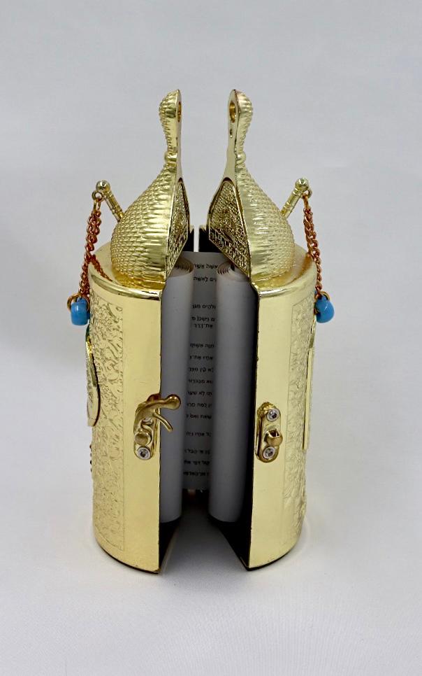 The Torah , made of metal with a gold plated finish.