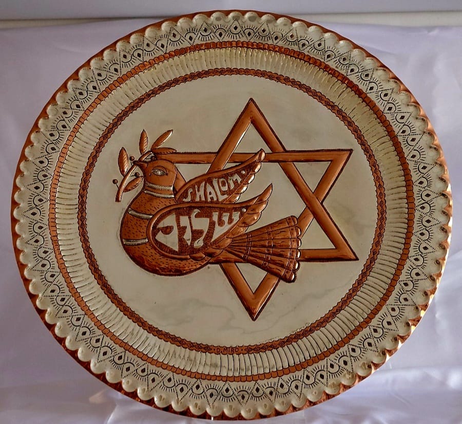Unique hand-made copper hammering with silver plating, a dove of peace and the Star of David