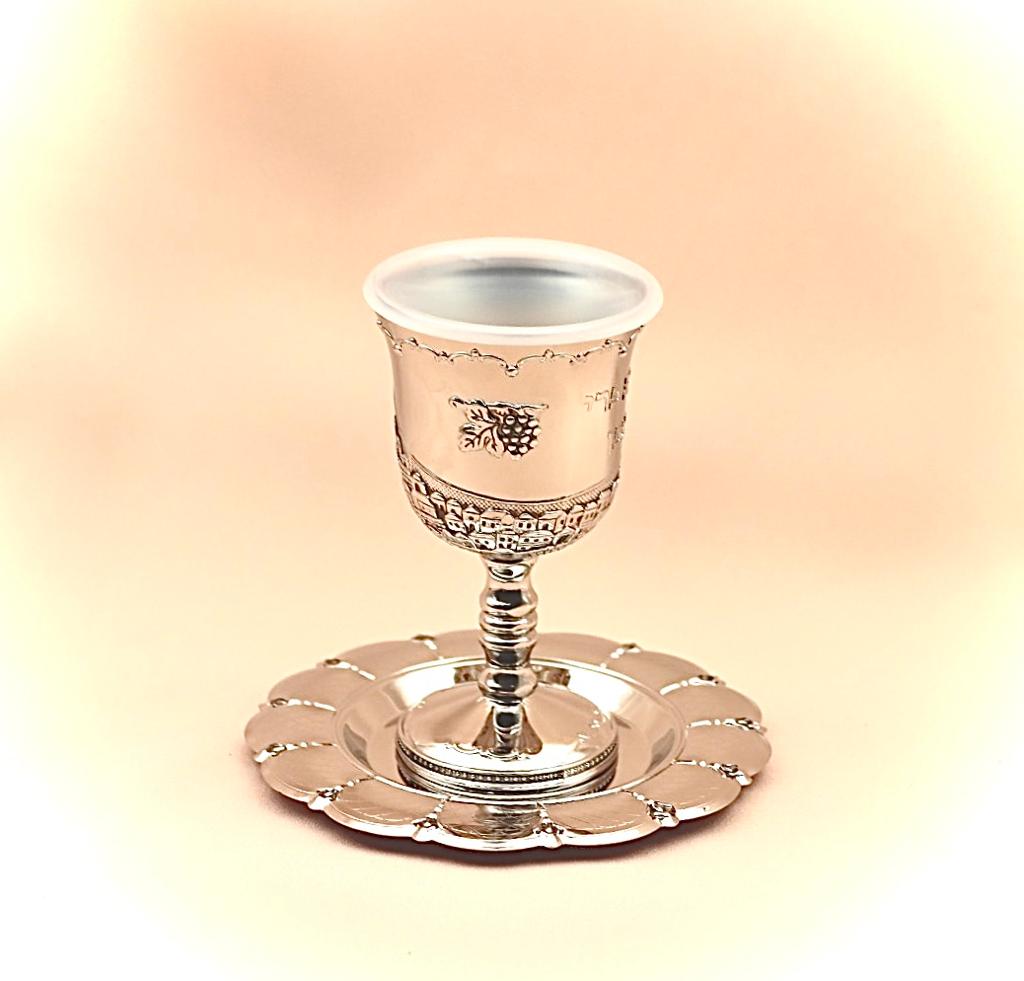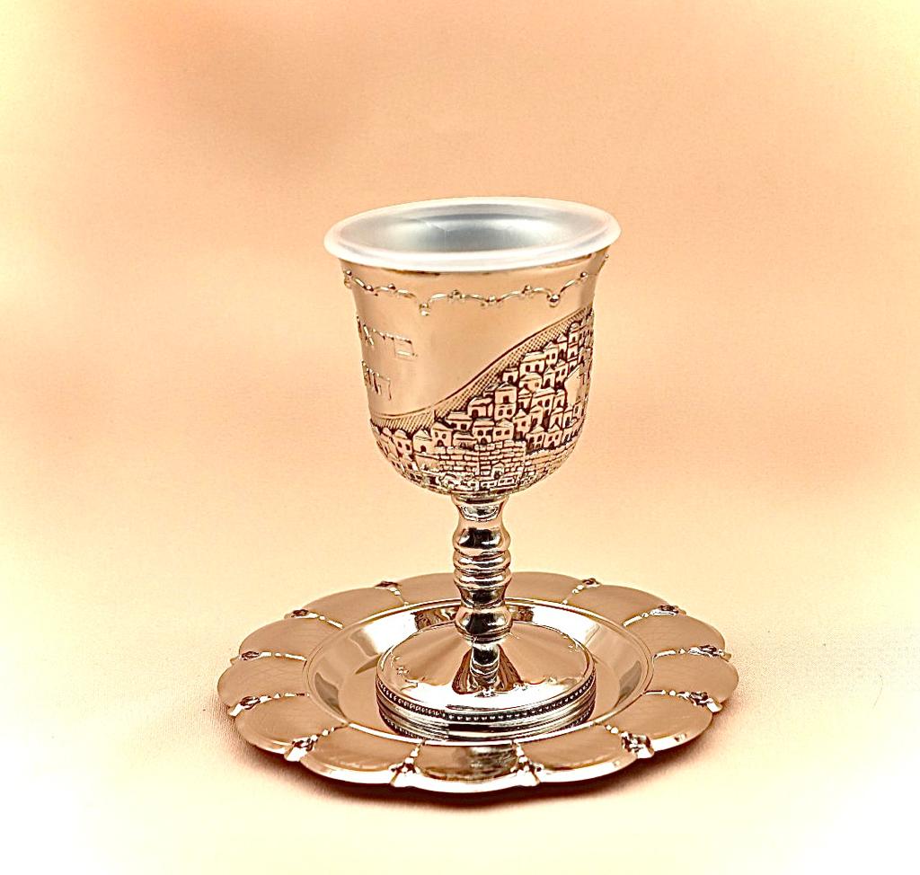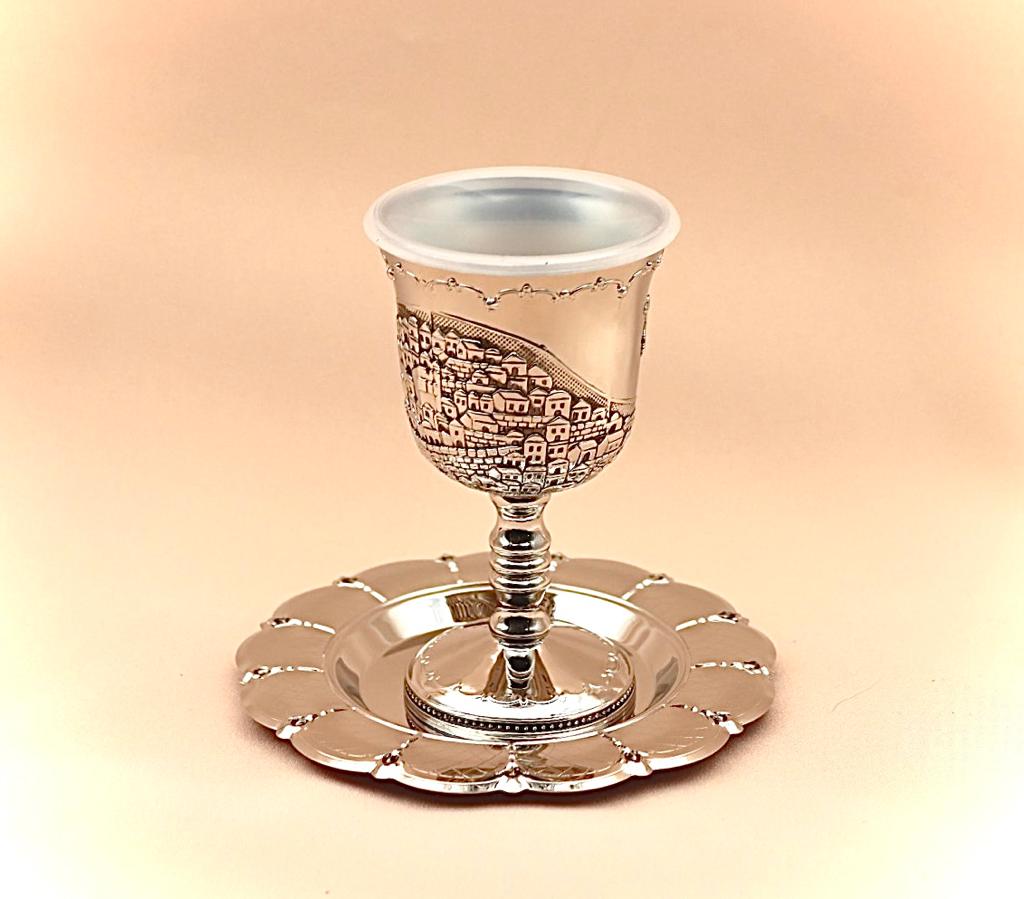 Wine cup made of silver plated metal decorated with old city Jerusalem